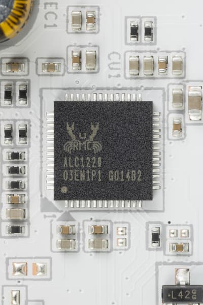 Плата оснащена звуковым кодеком Realtek ALC1220, обеспечивающим вывод звука по схемам до 7.1 с разрешением до 24 бит / 192 кГц.