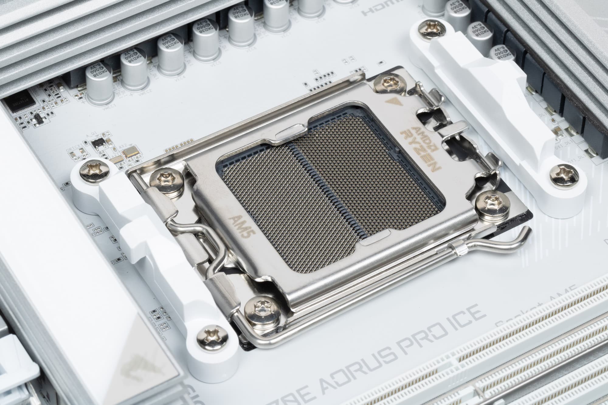 Плата Gigabyte поддерживает процессоры AMD поколений 7xxx/8xxx/9xxx, выполненные под разъем (сокет) AM5.