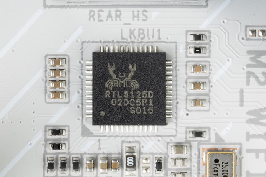 Материнская плата оснащена средствами связи просто отлично. Имеется скоростной Ethernet-контроллер Realtek RTL8125D, способный работать по стандарту 2,5 Гбит/с.