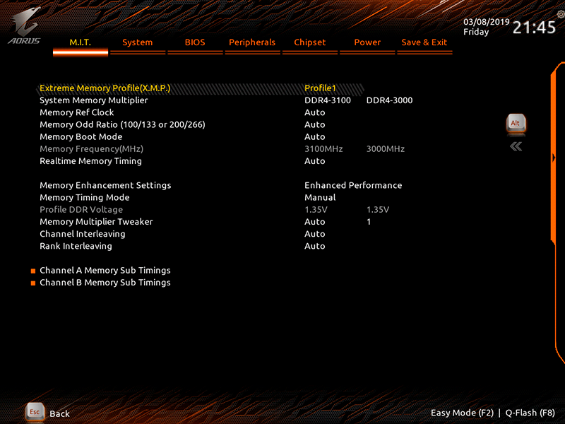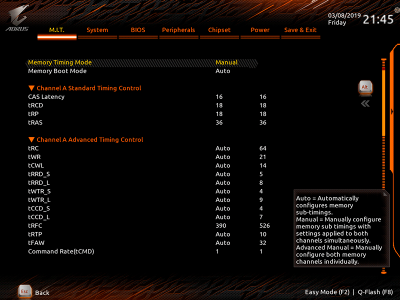 Только после того, как будут определены и тщательно протестированы максимальная частота процессора, частота при выполнении AVX-инструкций и частота Uncore, можно переходить к разгону памяти. Для этого на Gigabyte Z390 Aorus Master еще больше настроек, чем для разгона CPU.