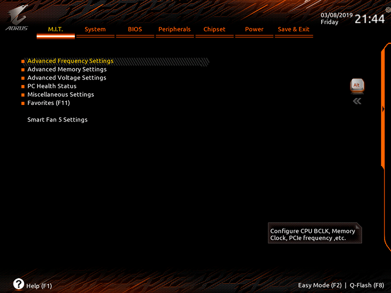 Итак, все настройки разгона собраны в основном разделе M.I.T. Здесь находятся шесть подразделов и утилита Smart Fan 5.