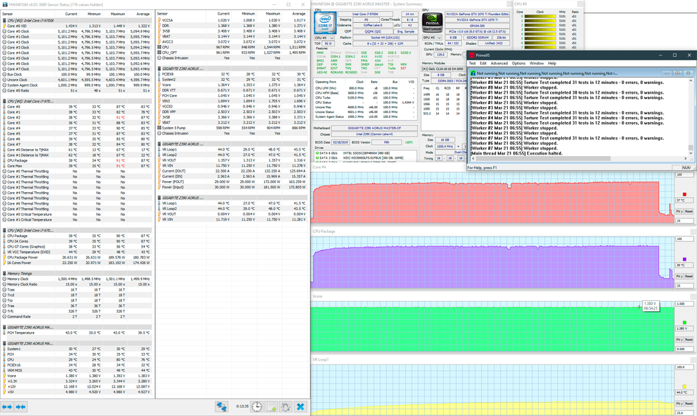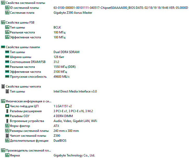 - системная плата: Gigabyte Z390 Aorus Master (Intel Z390, LGA1151-v2, BIOS F8h);