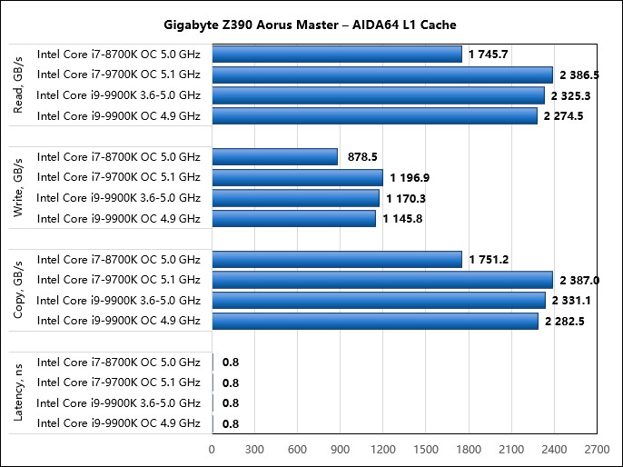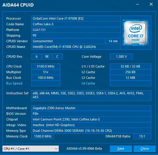 - Intel Core i9-9900K 3,6/5,0 ГГц (Coffee Lake Refresh, 14++ нм, P0, 8 × 256 КБ L2, 16 МБ L3, TDP 95 Вт);