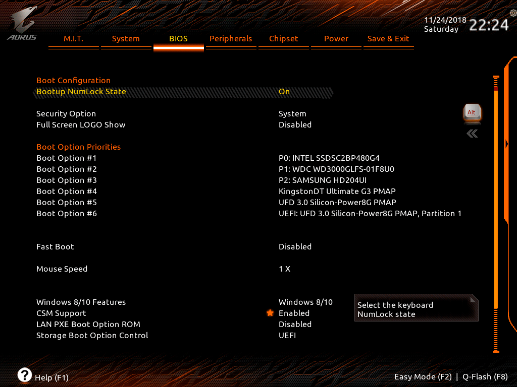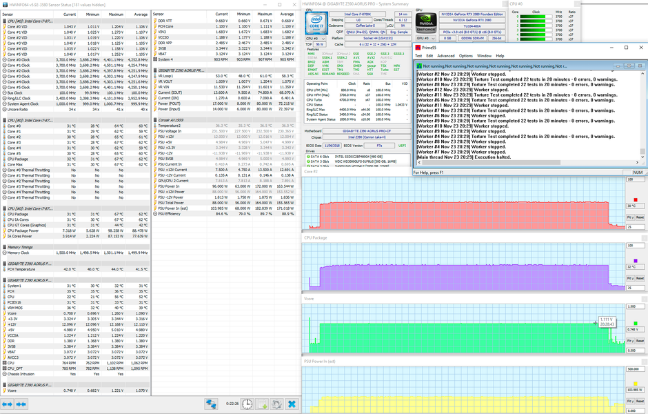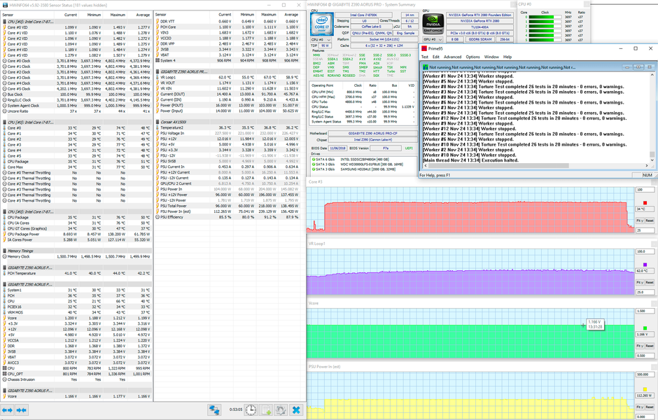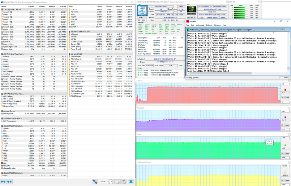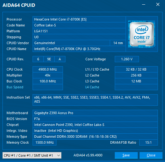 - системная плата: Gigabyte Z390 Aorus Pro (Intel Z390, LGA1151-v2, BIOS F7а от 7.11.2018);