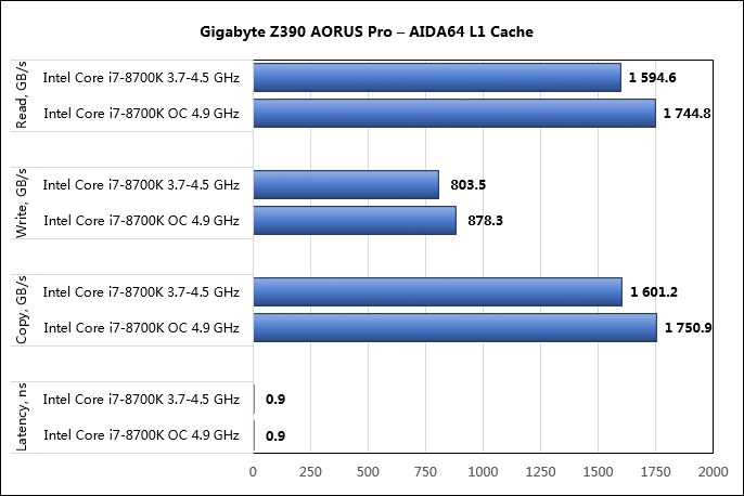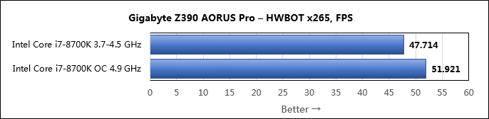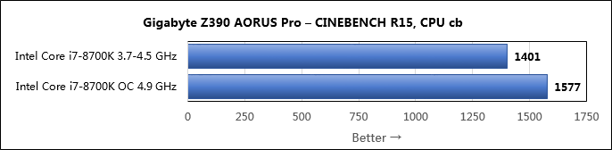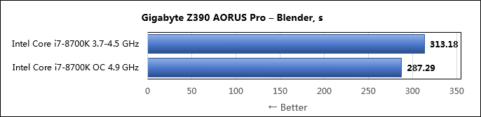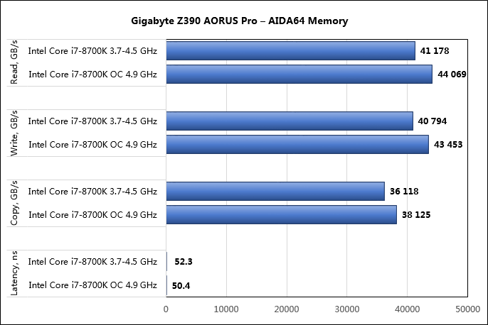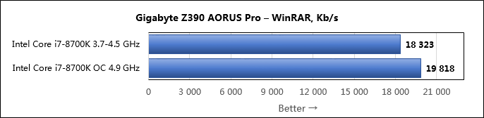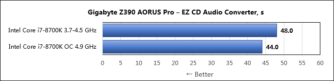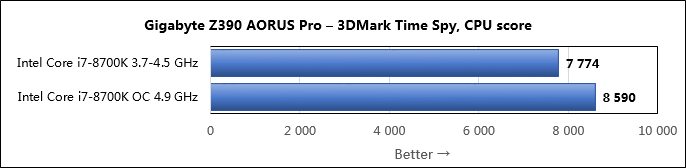 Тем не менее, полученный на Gigabyte Z390 Aorus Pro результат разгона процессора — вполне достойный, тем более, что разница в производительности от дополнительных 0,1 ГГц мизерна. Это нам косвенно подтвердит и блиц-тестирование производительности в следующем разделе статьи.