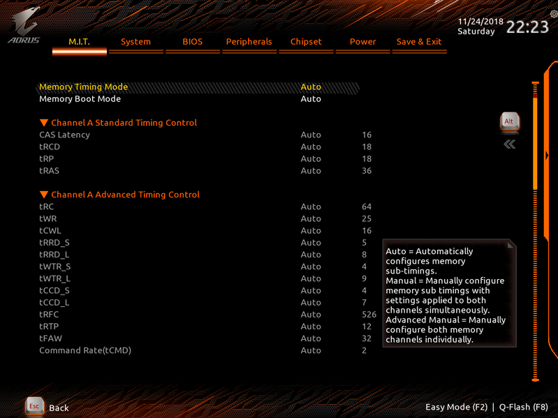 Для прожигателей времени не забыта и возможность ручной настройки таймингов памяти.