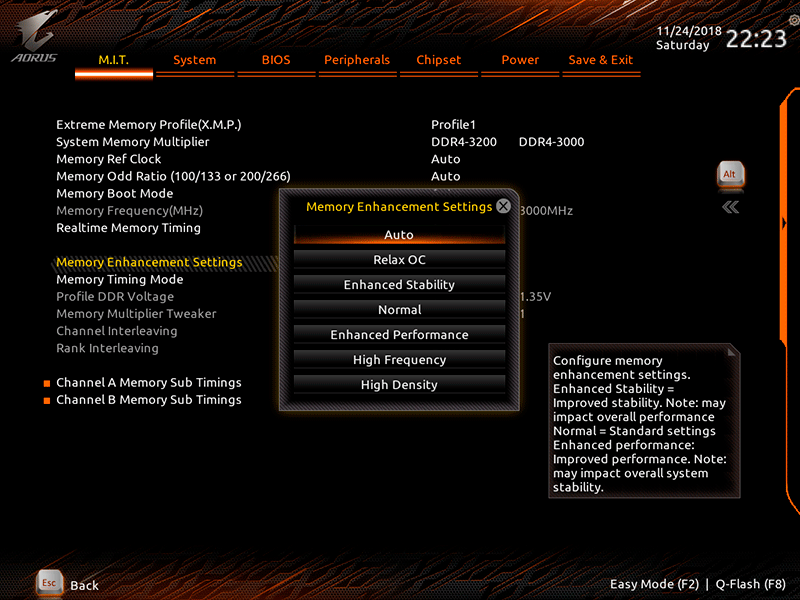 Кроме того, здесь же доступны шесть профилей работы памяти от стандартного до высокочастотного.