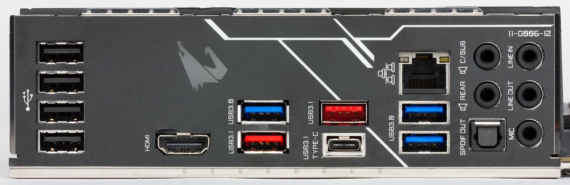 | Разъемы на задней панели | 4 × USB 2.0 1 × HDMI 3 × USB 3.1 Gen1 3 × USB 3.1 Gen2 1 × RJ-45 5 аудиоразъемов типа миниджек 1 × S/PDIF (оптический, выход) |
