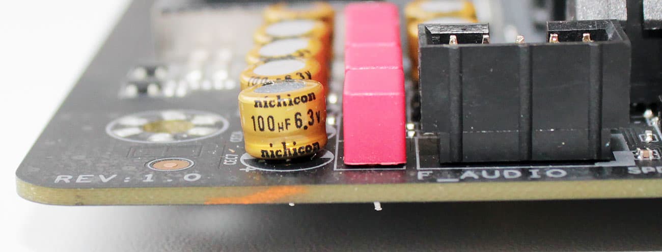 Отсутствие встроенного усилителя в аппаратной части звукового тракта разработчики попытались компенсировать семью «аудиофильскими» конденсаторами Nichicon японского производства и четырьмя Hi-Fi-конденсаторами Wima FKP2.