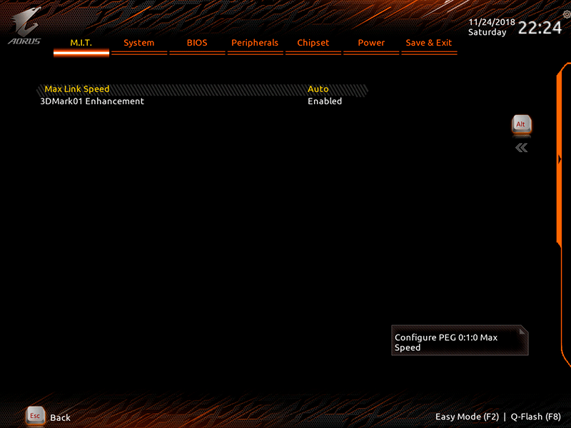 В предпоследнем подразделе основного раздела M.I.T. находятся два параметра: выбор режима работы главного порта PCI Express и активация оптимизаций для старых бенчмарков.