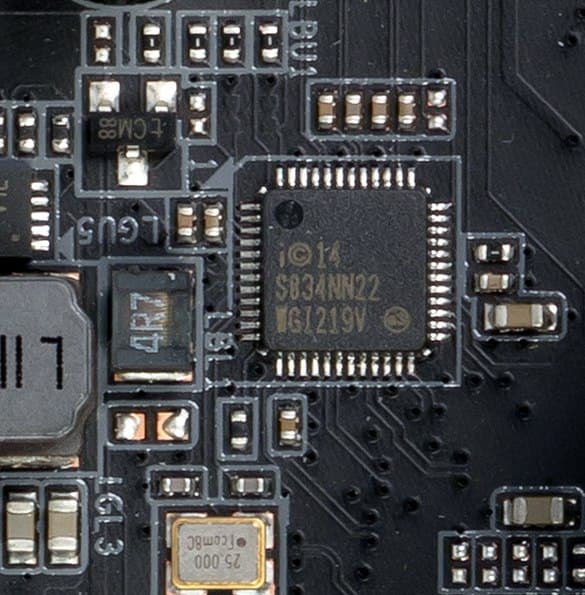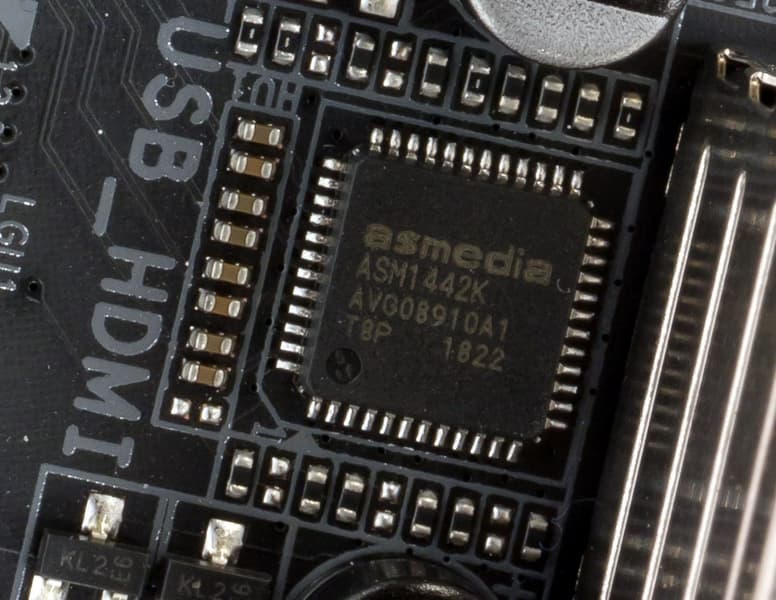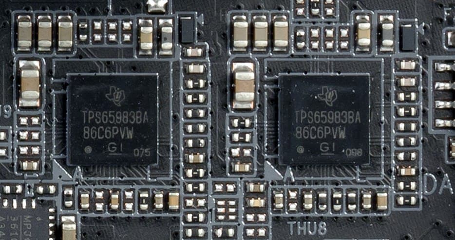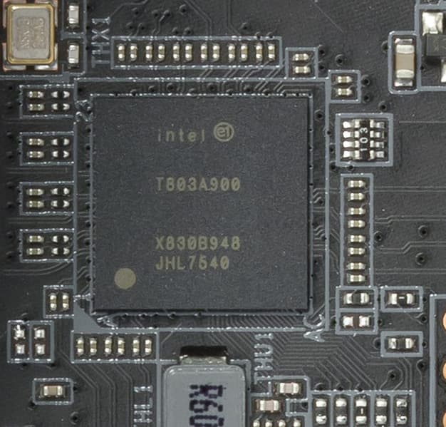 Данная версия интерфейса, разработанного Intel, поддерживает скорость передачи данных до 40 Гбит/с и до 6 устройств с одного выхода (через хабы). У данной платы есть 2 порта USB 3.1 формата Type-C на задней панели, вывод Thunderbolt осуществляется через них. Работа этих портов также поддерживается микросхемами Texas Instruments TPS65983A.