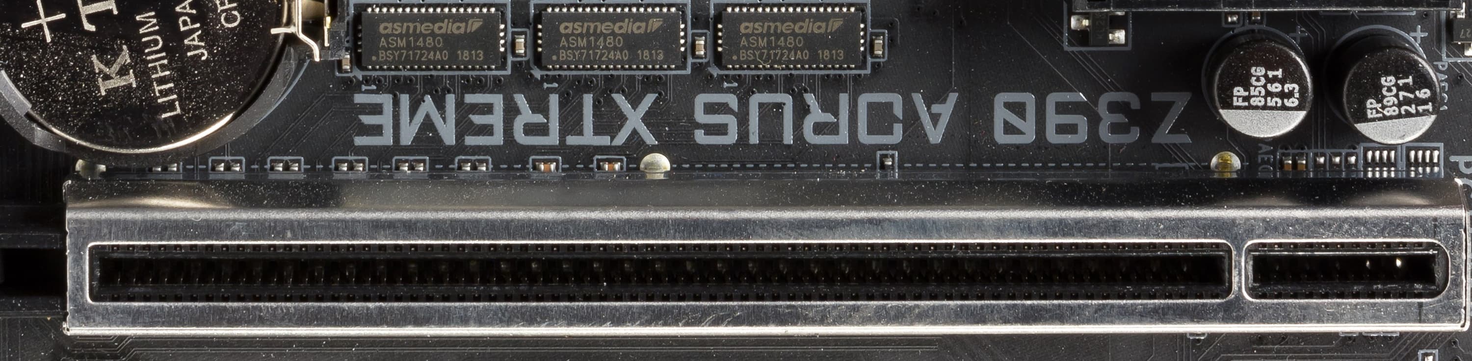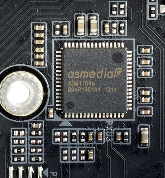 Распределением линий PCI-E между слотами в случае использования более одной видеокарты занимаются мультиплексоры ASM1480 той же ASMedia.