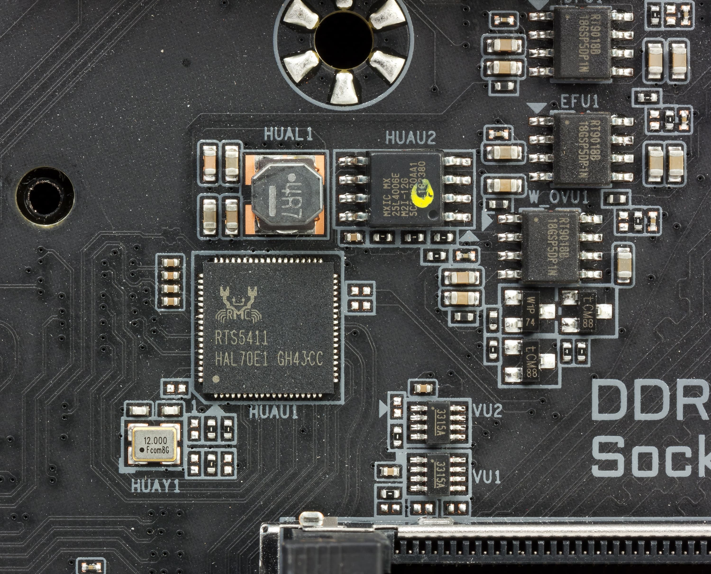 - еще 2 порта реализованы через концентратор USB 2.0 (Realtek RTS5411) и представлены разъемами Type-A (черного цвета) на задней панели.