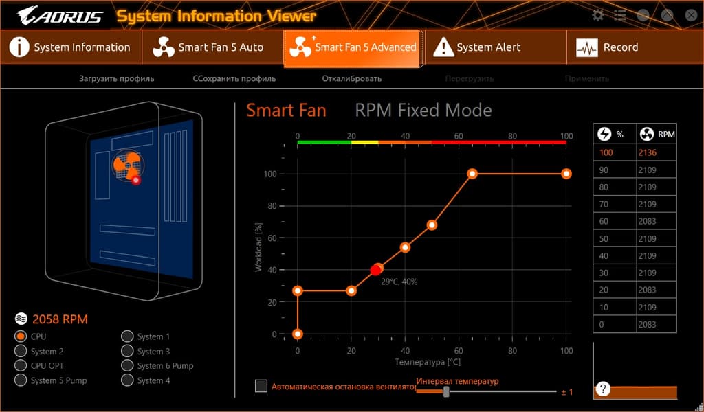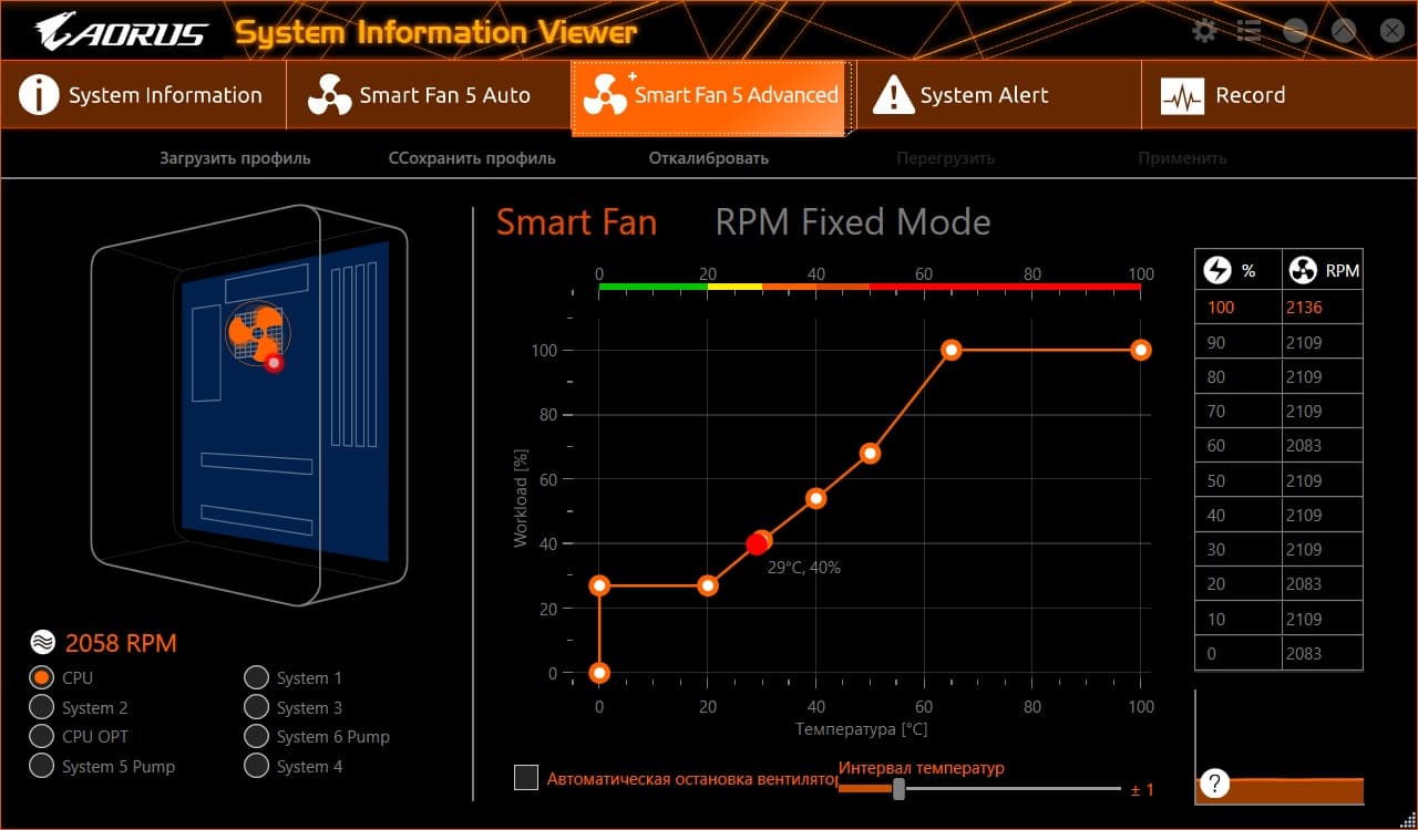 Режим 3. Все то же самое, что и в режиме 2, но СО выставлена в режим возможности работы на полную мощь (подъем оборотов гибкий, в зависимости от нагрева).