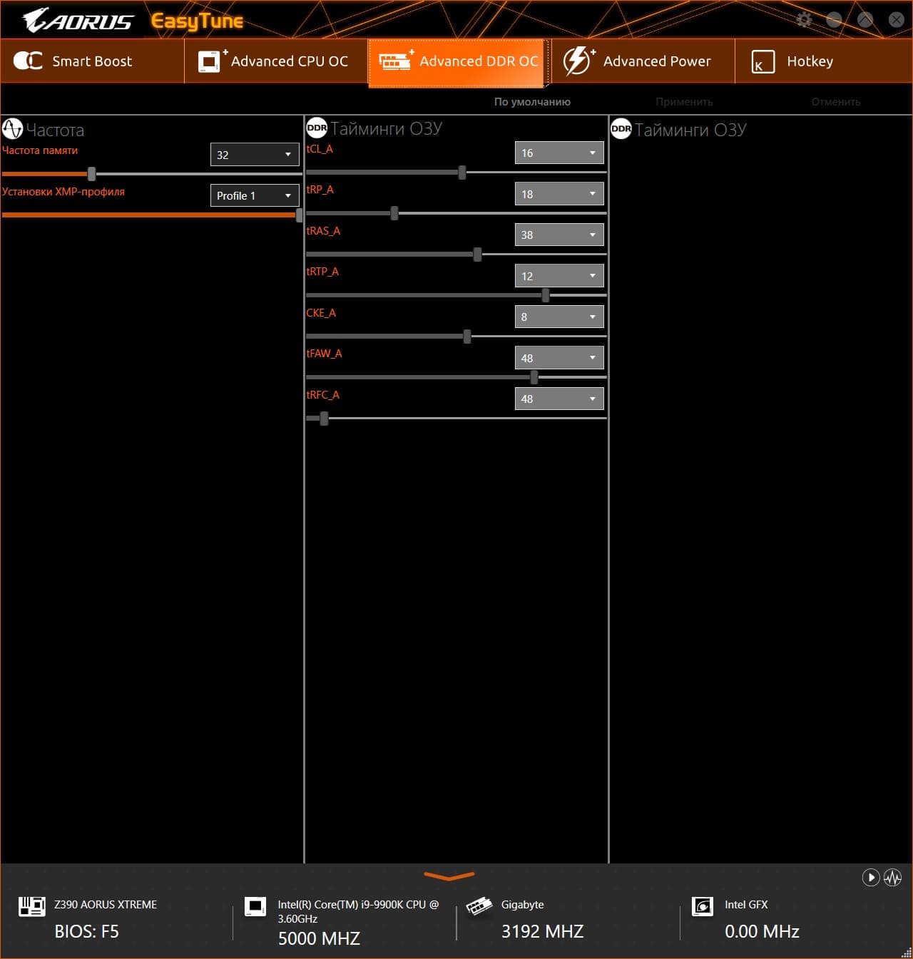 Учитывая, что наша память работает на 3200 МГц, а опытным путем мы уже установили, что повышение ее частоты даже до 4000 МГц на практике мало чего дает, в режиме разгона я оставил частоту работы памяти в 3600 МГц, полагая это достаточно оптимальным параметром.