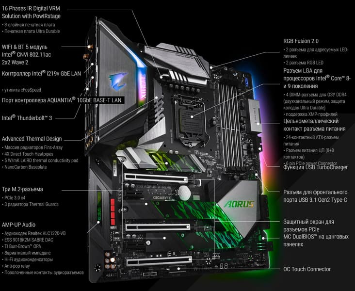 Gigabyte Z390 Aorus Xtreme — материнская плата, основанная на чипсете Intel Z390, для процессоров Intel Core 8-го и 9-го поколения.