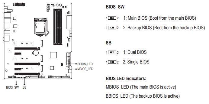 Также опыт говорит о том, что платы с уймой настроек в BIOS Setup (это всегда топовые оверклокерские версии) очень часто получают обновления прошивок (ну по крайней мере, первые полгода-год), ибо находятся ошибки, их правят. Поэтому вот такие физические переключатели копий BIOS дают очень хорошую дополнительную защиту от неудачных прошивок.