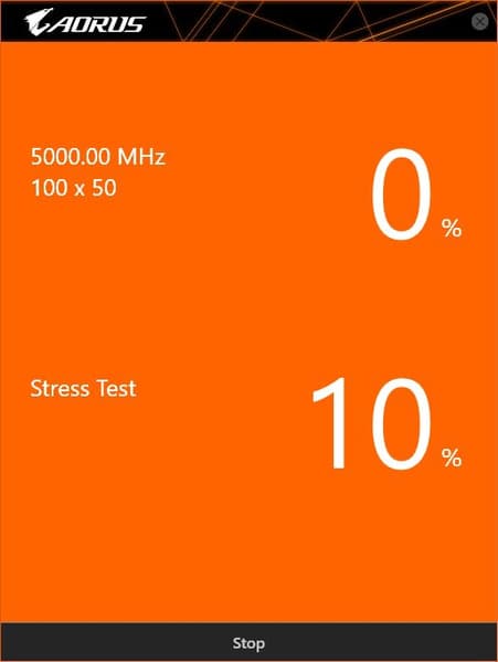 Режим 4. Утилитой EasyTune была установлена частота 5,0 ГГц для всех ядер.Напряжение ядра было поднято «вилкой» (от 1,35 до 1,42 В), при этом режим работы системы охлаждения средствами самой СО жестко выставлен на 80% от максимальных оборотов (постоянный шум около 40 дБА).