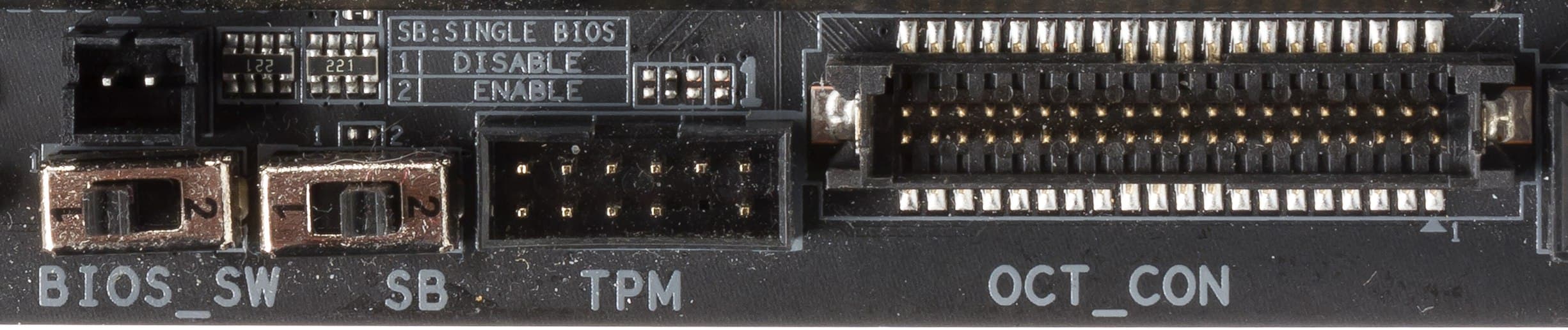 Традиционно почти на всех платах Gigabyte присутствует разъем TPM для подключения систем обеспечения безопасности.