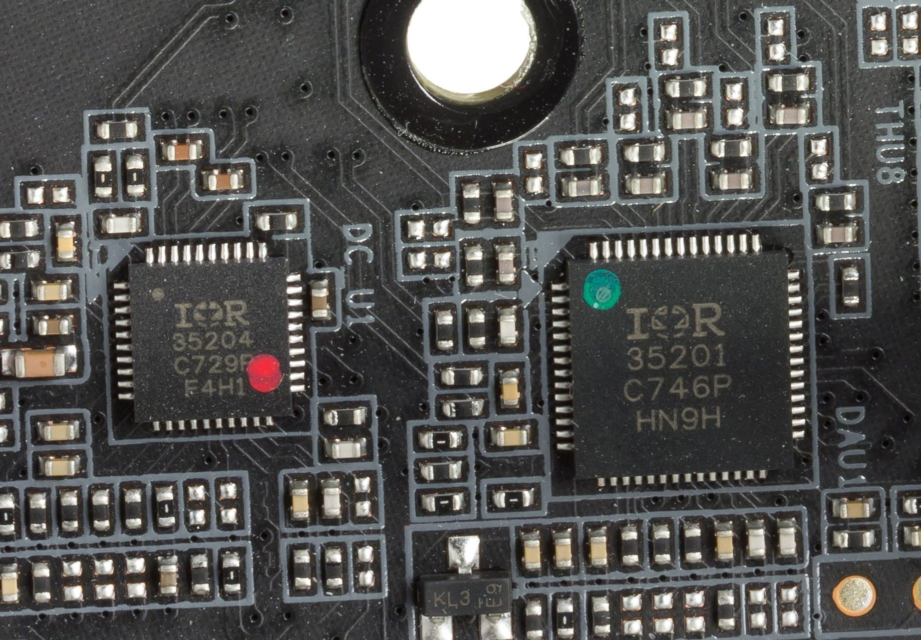 Плата закрыта разного рода накладными (навесными) элементами как с лицевой стороны, так и с обратной. Как и у всех топовых решений Gigabyte, печатная плата соответствует концепции Ultra Durable: имеет медные слои удвоенной толщины, что помогает лучше охлаждать саму PCB, а следовательно, вырастает энергоэффективность.