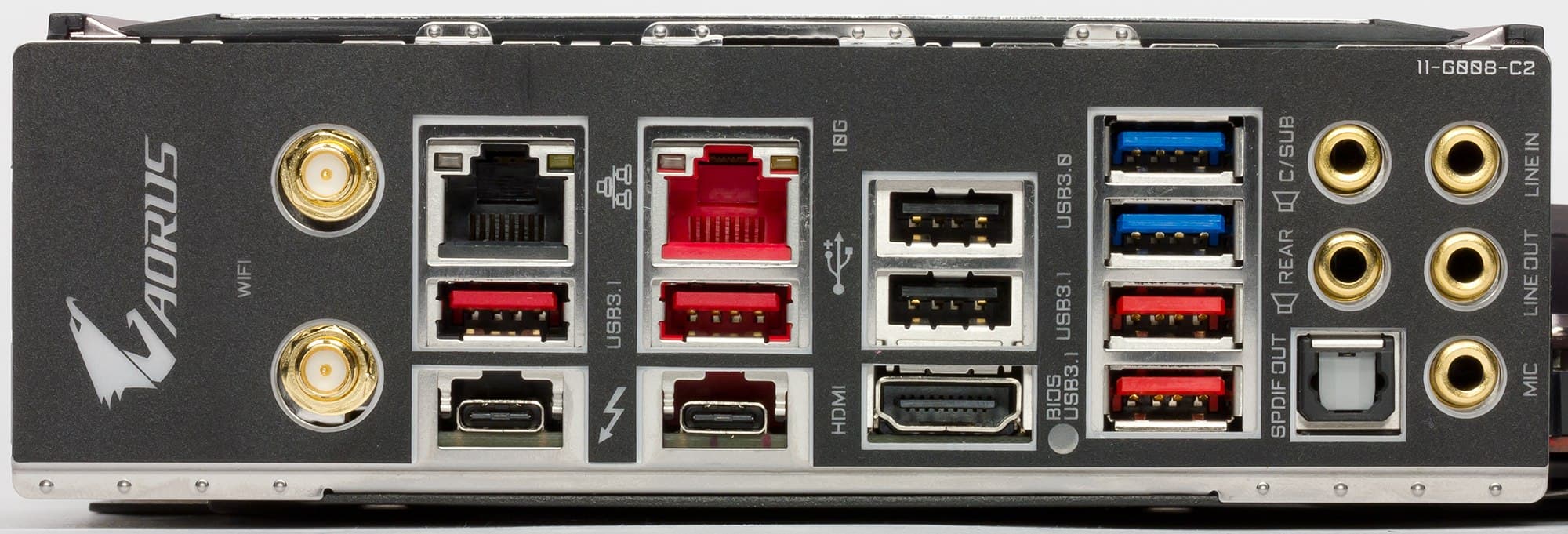 | Разъемы на задней панели | 2 × USB 3.1 (Type-C)/Thunderbolt 4 × USB 3.1 (Type-A) 2 × USB 3.0 (Type-A) 2 × USB 2.0 (Type-A) 2 × RJ-45 5 аудиоразъемов типа миниджек 1 × S/PDIF (оптический, выход) 1 × HDMI 1.4 2 антенных разъема |
