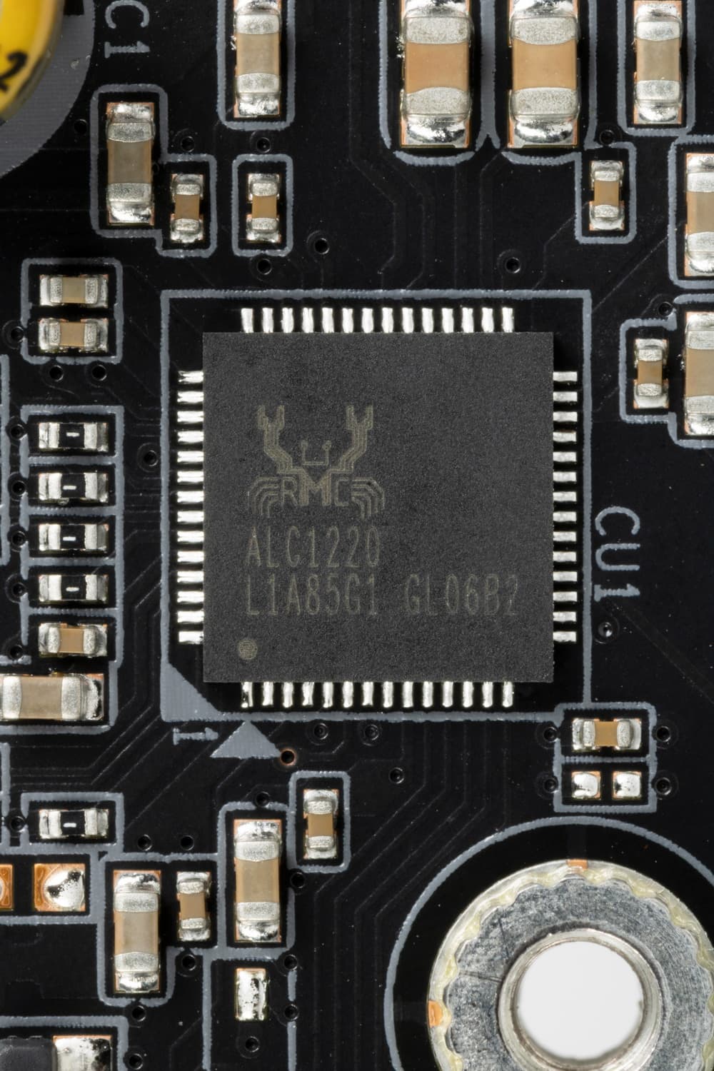 Мы знаем, что уже достаточно давно в большинстве современных материнских платах звуком заведовал аудиокодек Realtek ALC1220. В целом обеспечивает вывод звука по схемам до 7.1 с разрешением до 24 бит / 192 кГц. Мы видели уже и ALC4082 того же производителя с улучшенными характеристиками 32 бит / 384 кГц. Однако в данном случае мы видим возврат к прежнему ALC1220, а также схема вывода упрощена до 5.1.