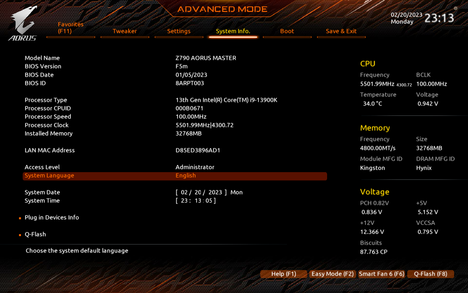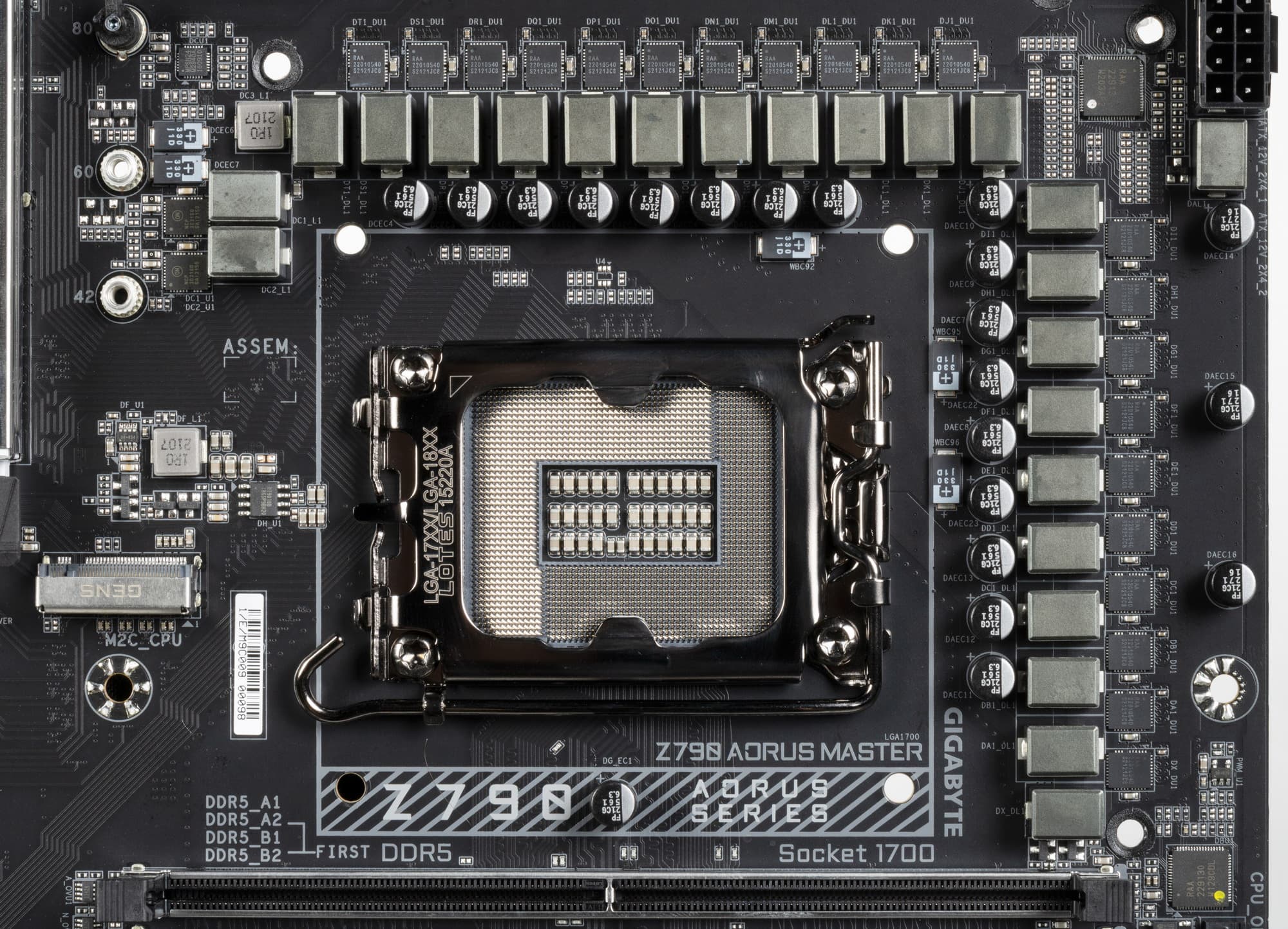 Еще раз надо напомнить, что Gigabyte Z790 Aorus Master поддерживает процессоры Intel Core 12/13-го поколений, выполненные под разъем (сокет) LGA1700.