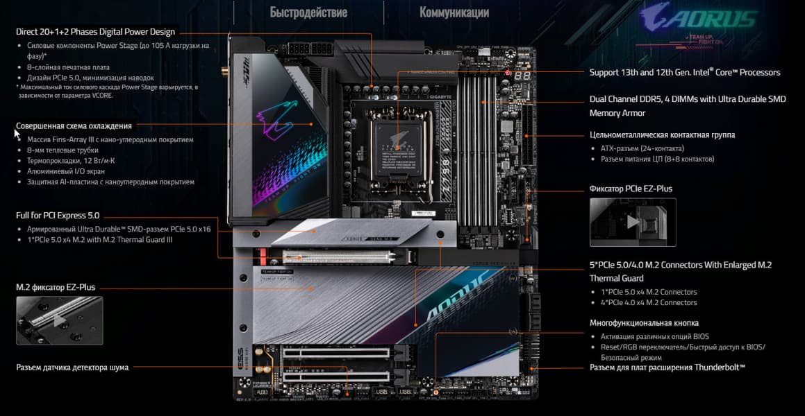 Переходим к герою нынешнего материала – материнской плате Gigabyte Z790 Aorus Master, которая относится к топовому суббренду Aorus, поэтому перед нами почти флагман (мы помним, что самая-самая в этой линейке — материнка c суффиксом Xtreme, а Master — на ступень ниже).
