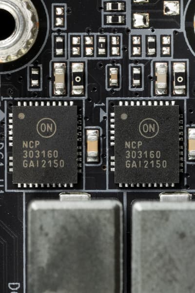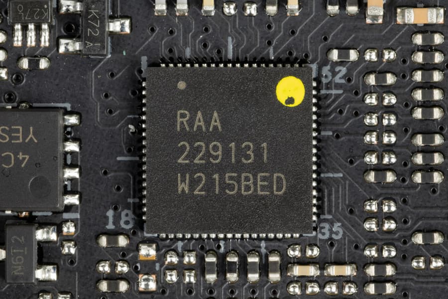 Управляет схемой два ШИМ-контроллера RAA229130 и RAA229131 от Renesas, каждый рассчитан максимум на 20 фаз.