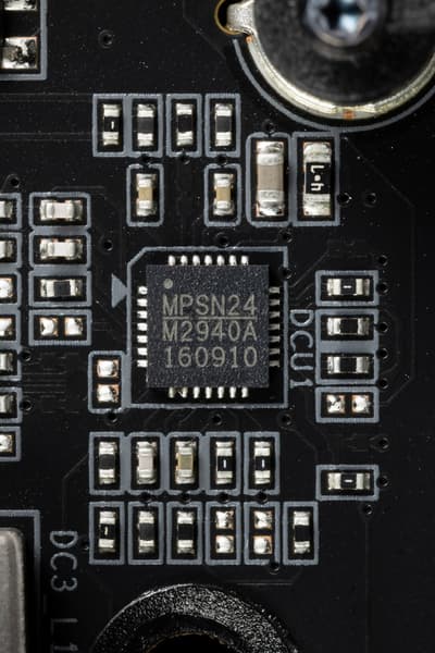 Блок VCCSA имеет свою отдельную двухфазную схему питания (с мосфетами от Om Semi (до 60А), управляемую ШИМ-контроллером MP2940A от Monolithic Power Systems.