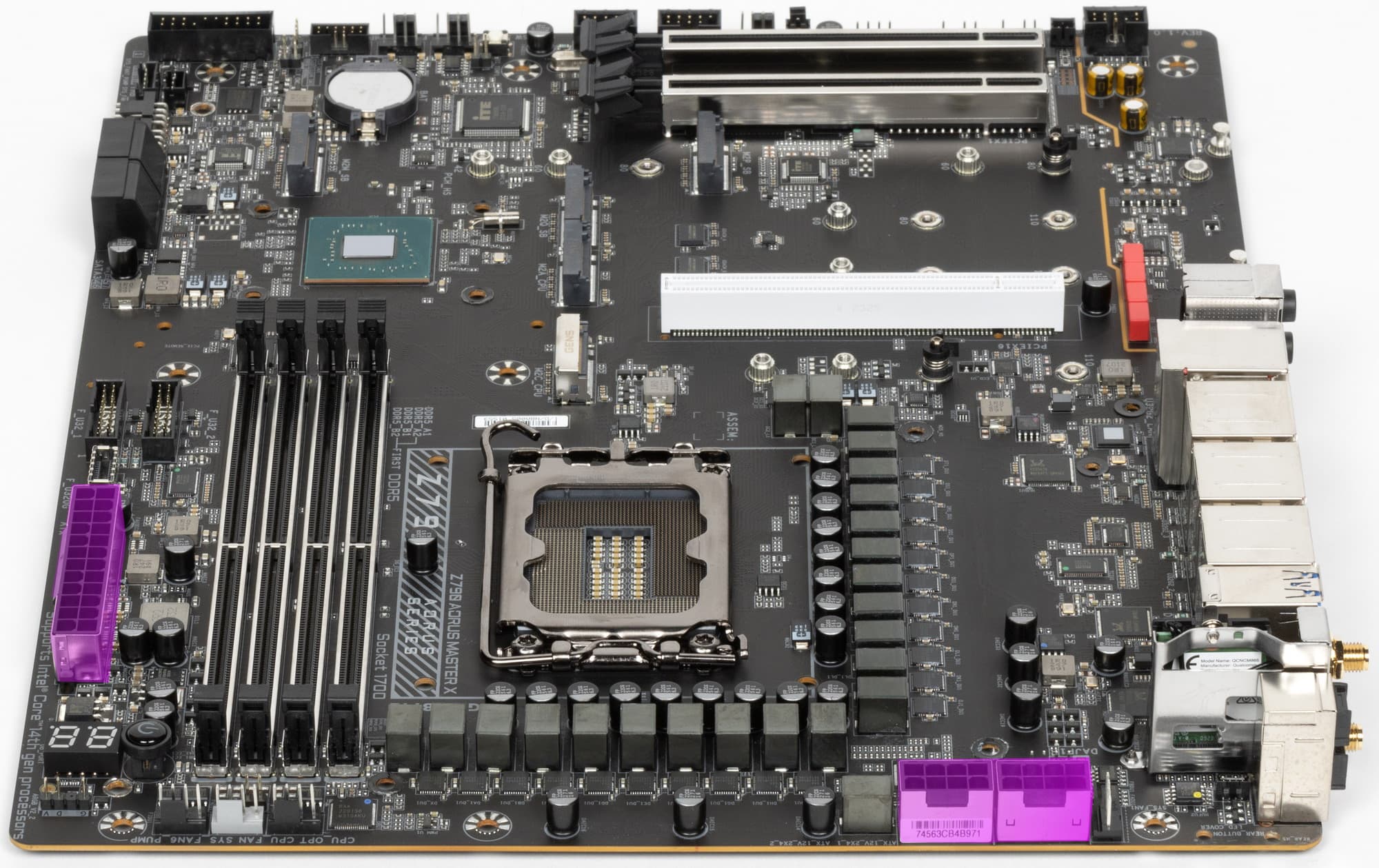 Стоит напомнить, что чипсет Z790 имеет 38 высокоскоростных портов (High Speed In Out, HSIO), до 5х интегрированных USB 3.2 Gen2x2 (до 20 Gb/s) портов (правда каждый из них требует поддержки со стороны двух USB 3.2 Gen2, неважно, от самого Z790 или сторонних хабов). В свою очередь 12е/13е/14е поколения процессоров имеют поддержку PCIe 5.0 в виде 16 линий (расходуемые на слоты PCIe x16), плюс 4 линии PCIe 4.0, идущие на М.2 слот, получающий данные непосредственно от процессора. По поводу памяти: все эти поколения процессоров могут работать как с DDR5, так и с DDR4.
