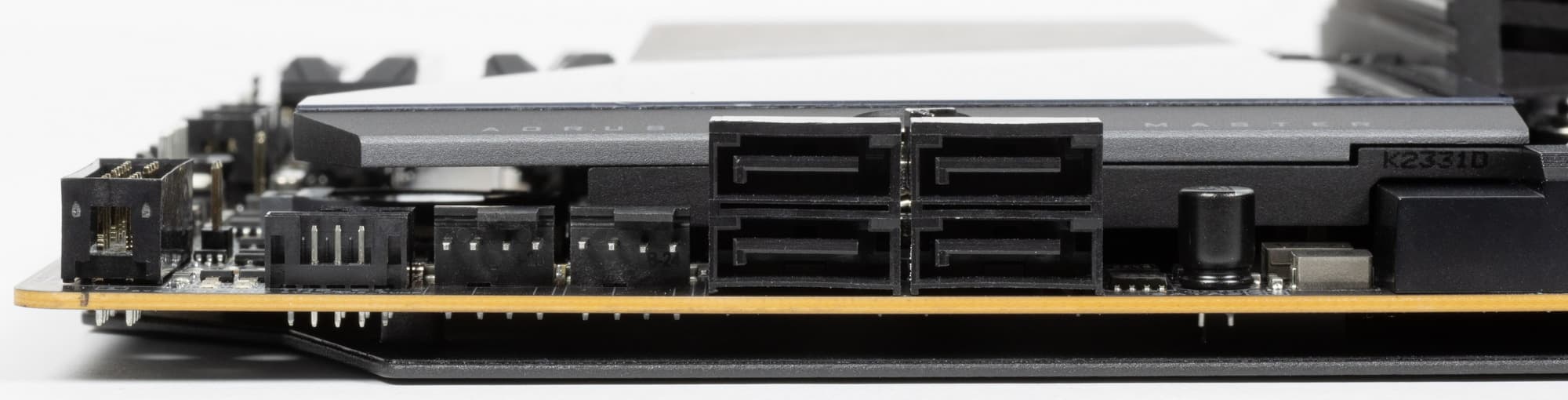 Всего у платы 4 разъема Serial ATA 6 Гбит/с + 5 слотов для накопителей в форм-факторе M.2. 4 порта SATA 1,2,3,4 реализованы через чипсет Z790 и поддерживают создание RAID.