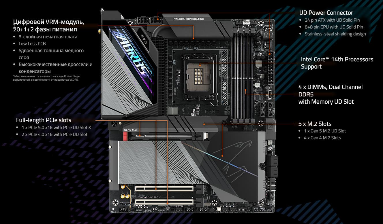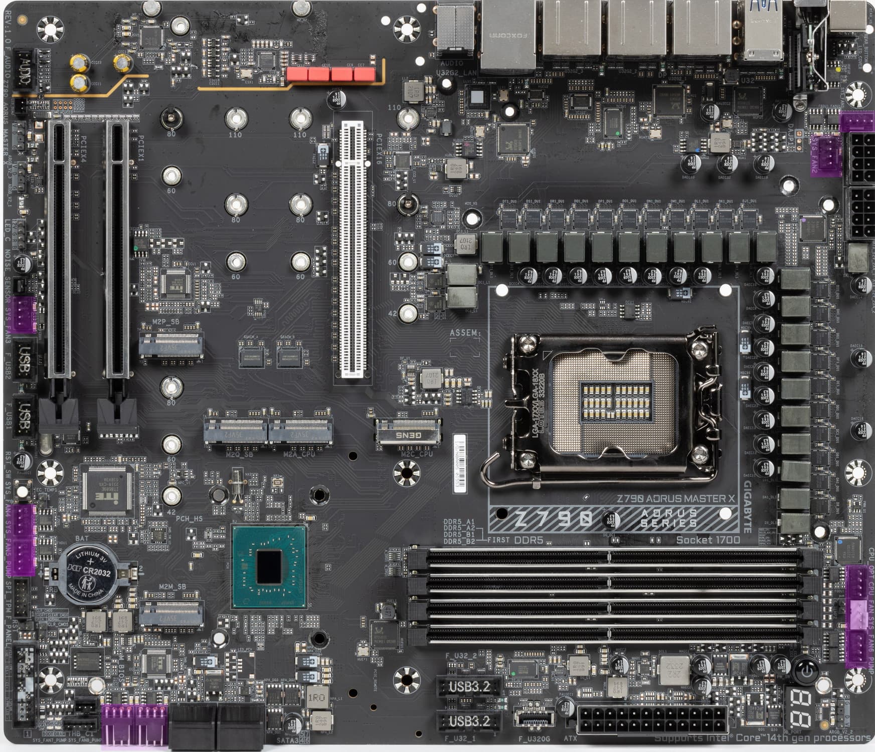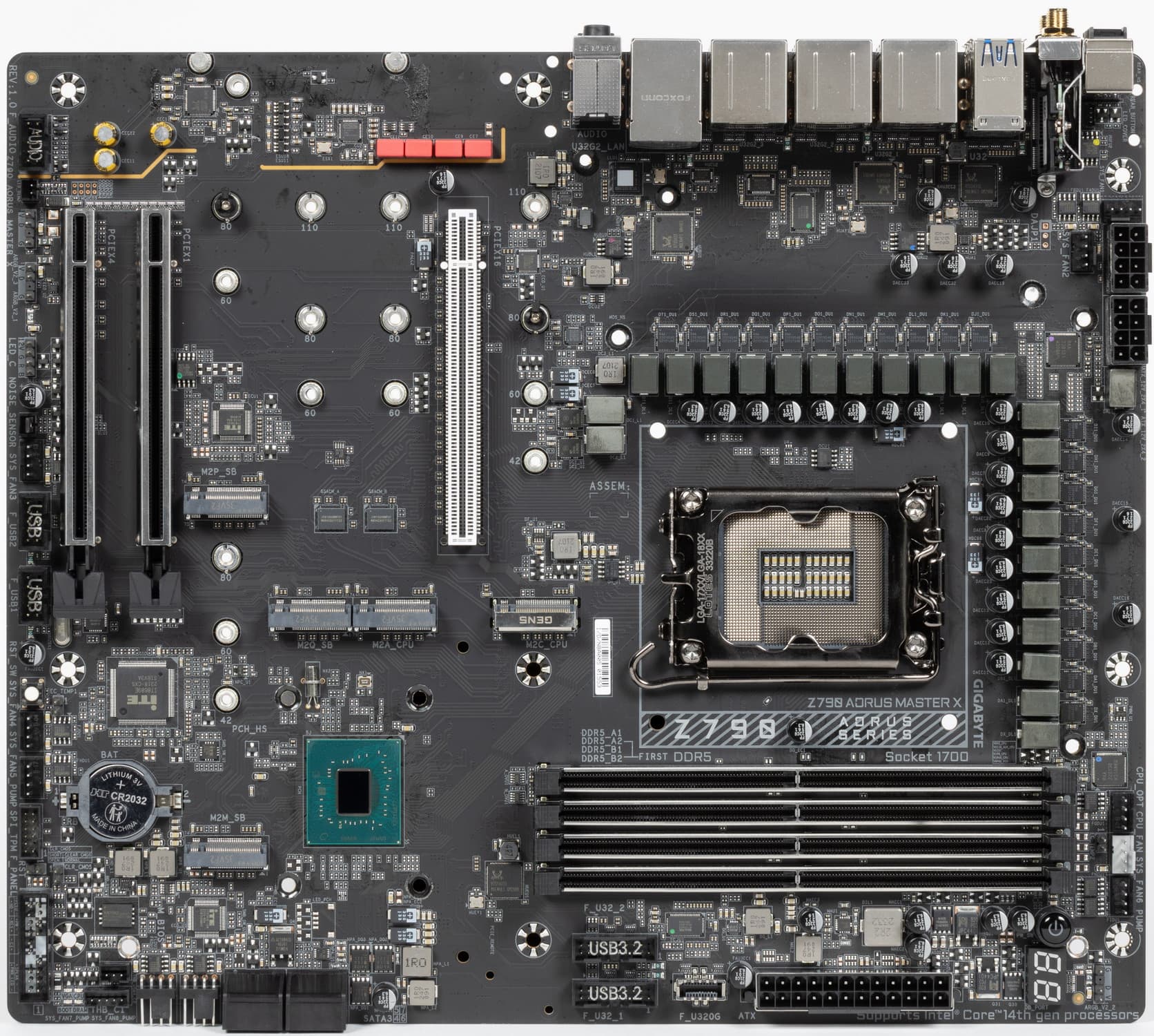 Gigabyte Z790 Aorus Master X поддерживает процессоры Intel Core 12/13/14-го поколений, выполненные под разъем (сокет) LGA1700.