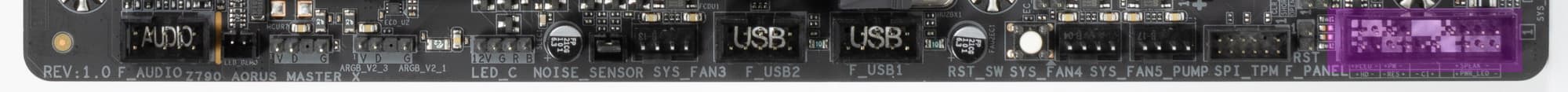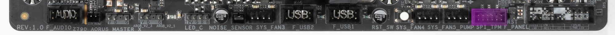 У Gigabyte Z790 Aorus Master X имеется 23 порта USB разных видов, включая 7 очень быстрых USB 3.2 Gen2, а также три(!) USB 3.2 Gen2×2 в виде портов Type-C. Плата предлагает 3 слота PCIe х16, один из которых получает от процессора 16 линий PCIe версии 5.0, а два других работают в режимах х1 и x4 (подключены к чипсету). Также у платы аж 5 слотов M.2: два подключены напрямую к процессору, при этом один линиями PCIe 4.0, а другой делит линии PCIe 5.0 со слотом PCIe x16, вынуждая последний переходить в режим х8. Три других слота М.2 подключены к чипсету Z790 линиями PCIe 4.0.