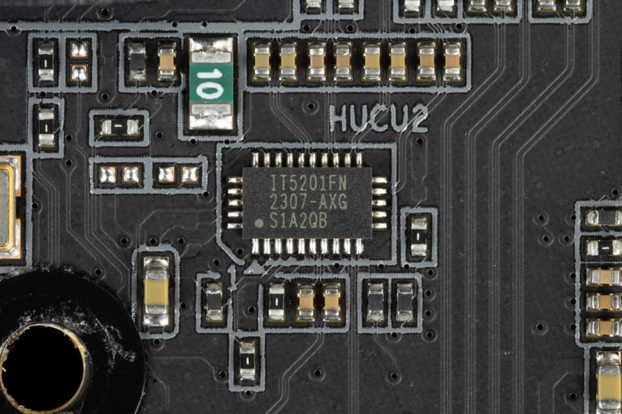 - 4 порта USB 2.0/1.1: все реализованы через контроллер Genesys Logic GL850G (на него потрачена 1 линия USB 2.0 от Z790) и представлены двумя внутренними разъемами (каждый на 2 порта).