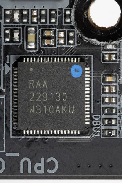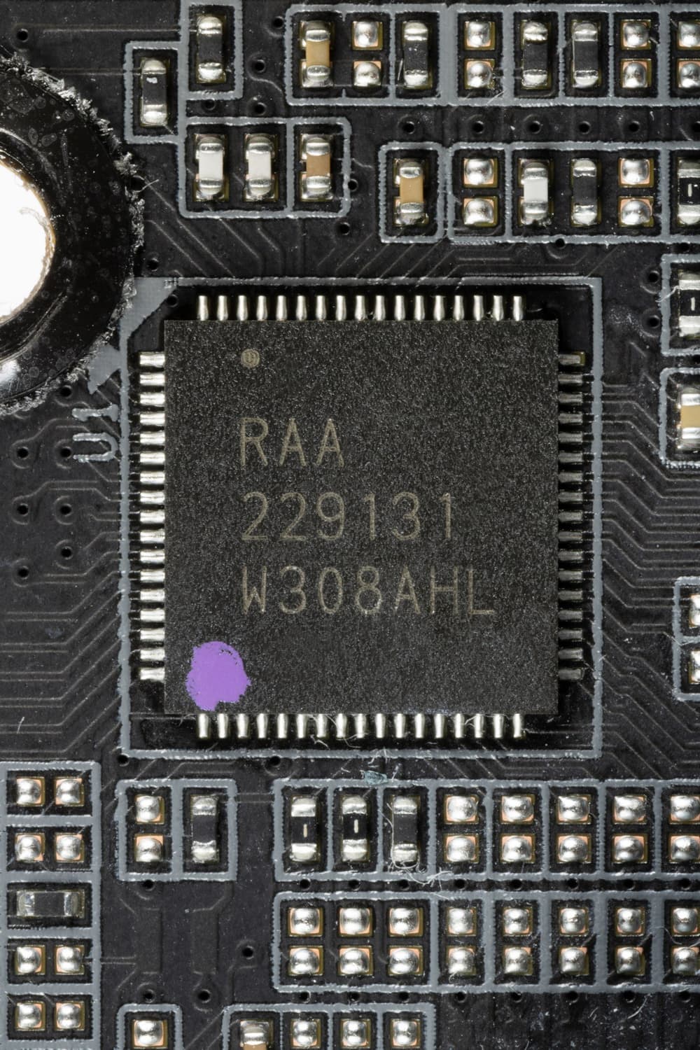 Управляет схемой два ШИМ-контроллера RAA229130 и RAA229131 от Renesas, каждый рассчитан максимум на 20 фаз.