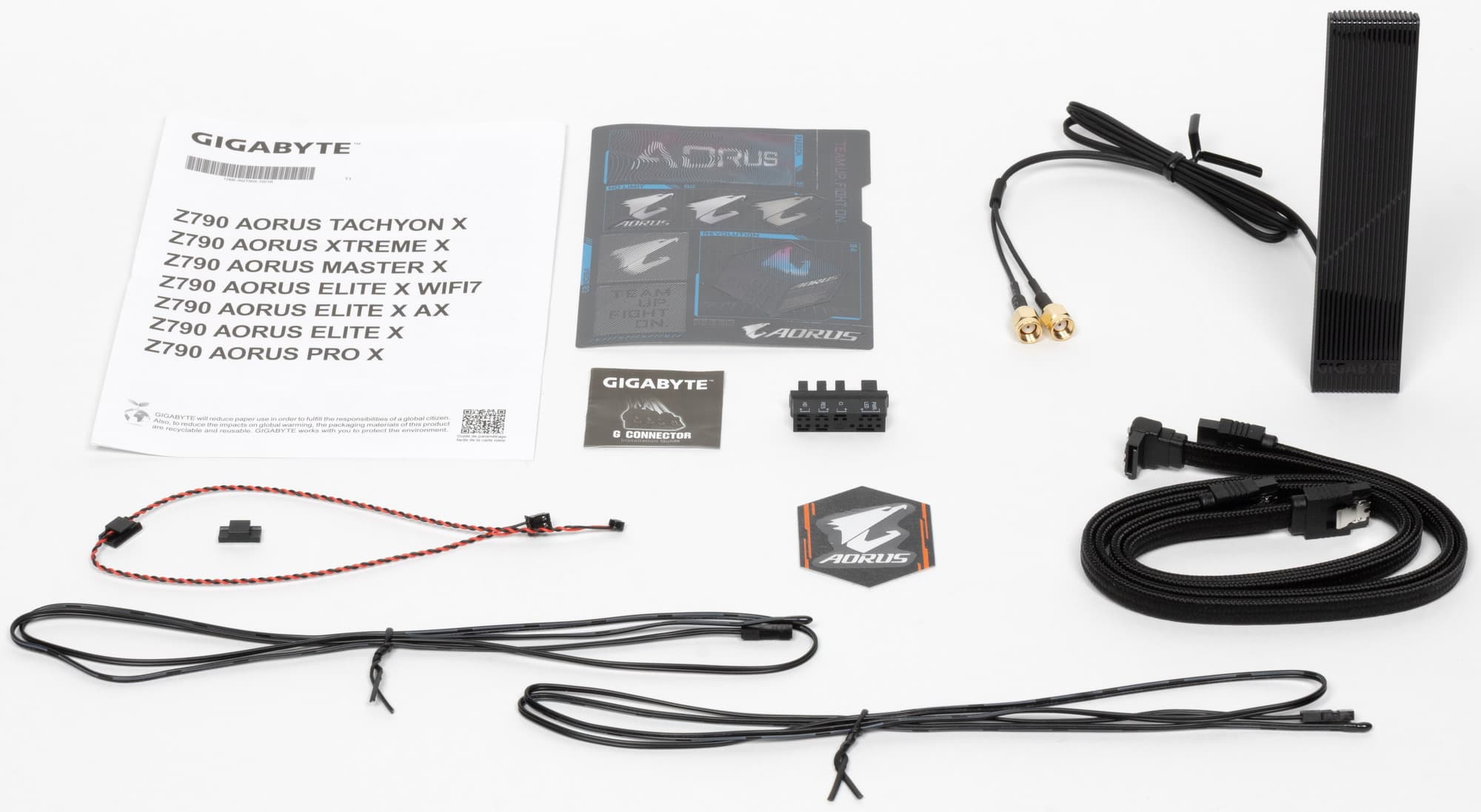 Gigabyte Z790 Aorus Master X поставляется в традиционной коробке фирменного «cоколиного» дизайна серии Aorus. Комплект размещен под платой в отдельном отсеке.