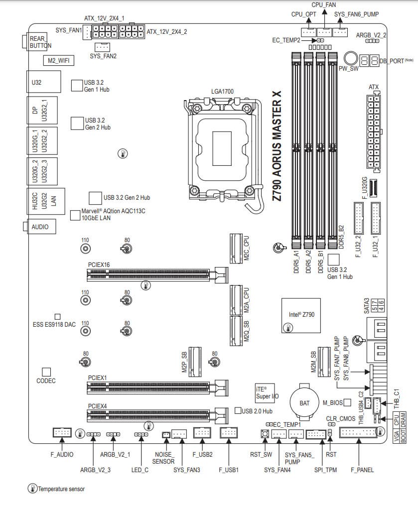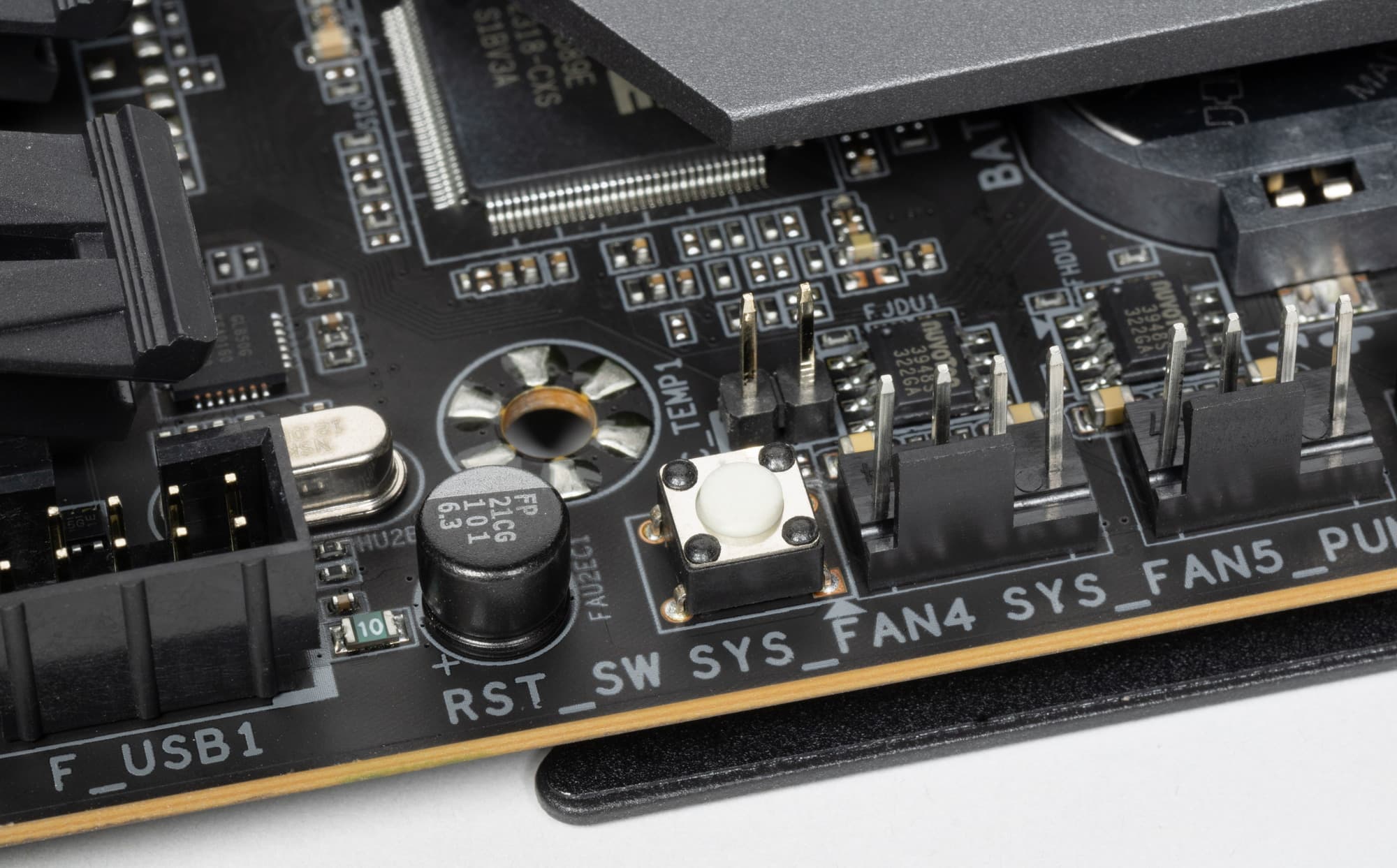 | Прочие внутренние элементы | 24-контактный разъем питания ATX 2 8-контактный разъем питания EPS12V 1 слот M.2 (E-key), занят адаптером беспроводных сетей 1 разъем для подключения порта USB 3.2 Gen2x2 Type-C 2 разъема для подключения 4 портов USB 3.2 Gen1 2 разъема для подключения 4 портов USB 2.0 10 разъемов для подключения 4-контактных вентиляторов и помп ЖСО 2 разъема для подключения неадресуемой RGB-ленты 2 разъема для подключения адресуемой ARGB-ленты 1 разъем аудио для передней панели корпуса 1 разъем для датчика шума 2 разъема для термодатчиков 1 разъем для устройств безопасности TPM 1 разъем для дискретных карт Thunderbolt 1 разъем для подключения управления с передней панели корпуса 1 кнопка включения питания Power 1 кнопка перезагрузки Reset |
