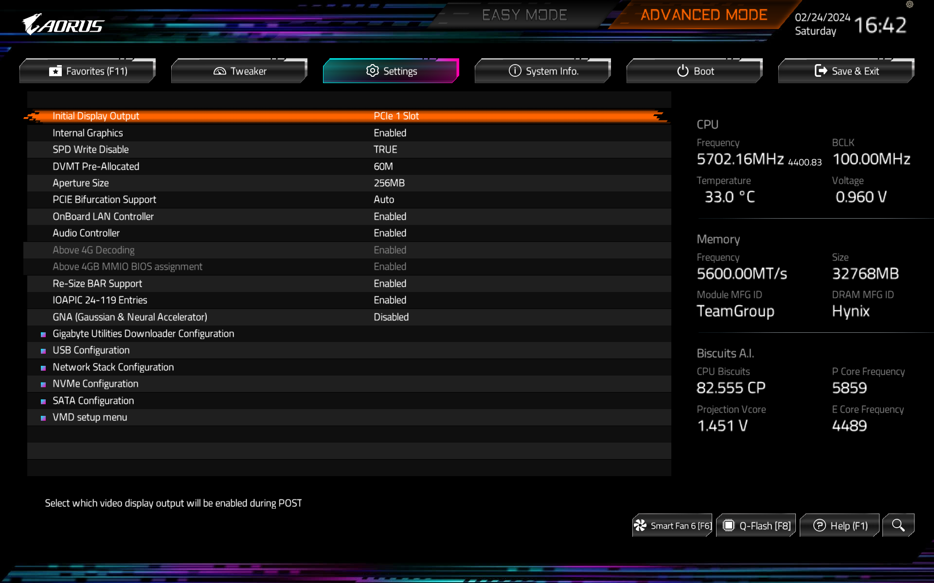 Формально имеется поддержка памяти DDR5 до 5600 МГц, однако всем хорошо известно, и производители материнских плат это активно рекламируют: через XMP-профили сейчас можно использовать частоты до 7000 и выше МГц. В частности данная плата поддерживает частоты до 8266 МГц.