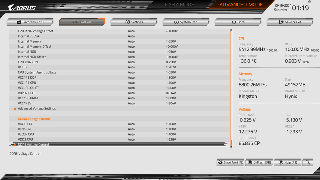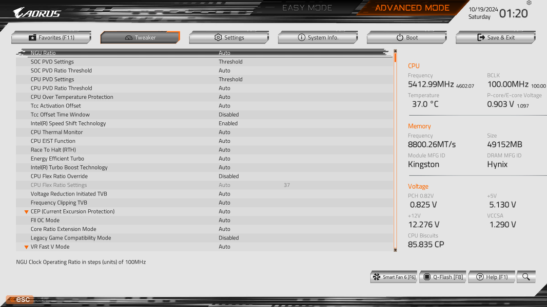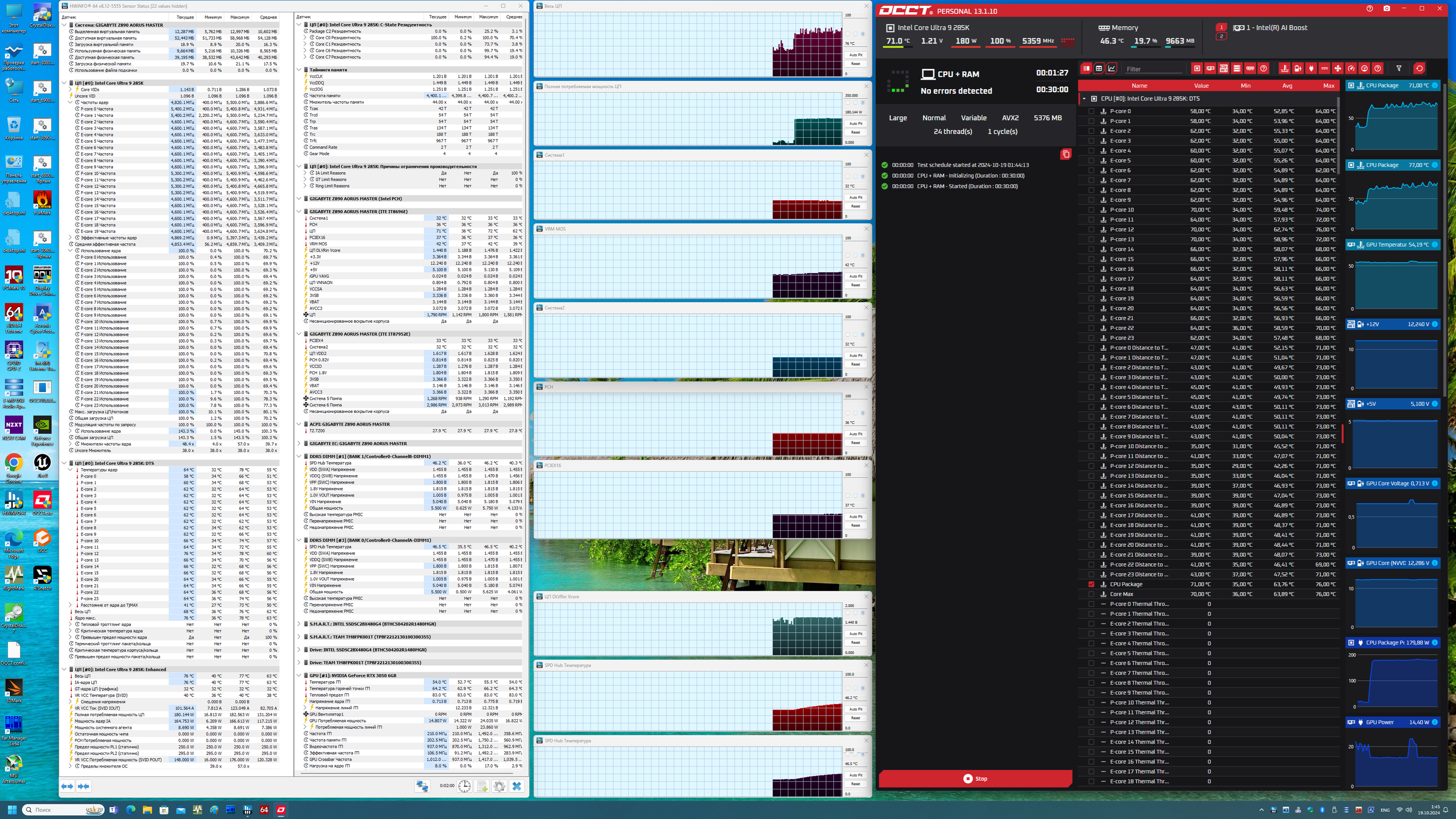 Мне сложно оценить, высокий ли этот авторазгон, или нет. С первого взгляда – очень приличный. Ибо, безусловно, у материнской платы очень мощное питание. Сразу же заметил, что у i9 14900K при подобных частотах работы потребление переваливало за 240 Вт, а здесь – около 180 Вт. Но снова подчеркну, что здесь я изучаю параметры материнской платы, а не процессора, по новому CPU у нас будет еще отдельный детальный материал.