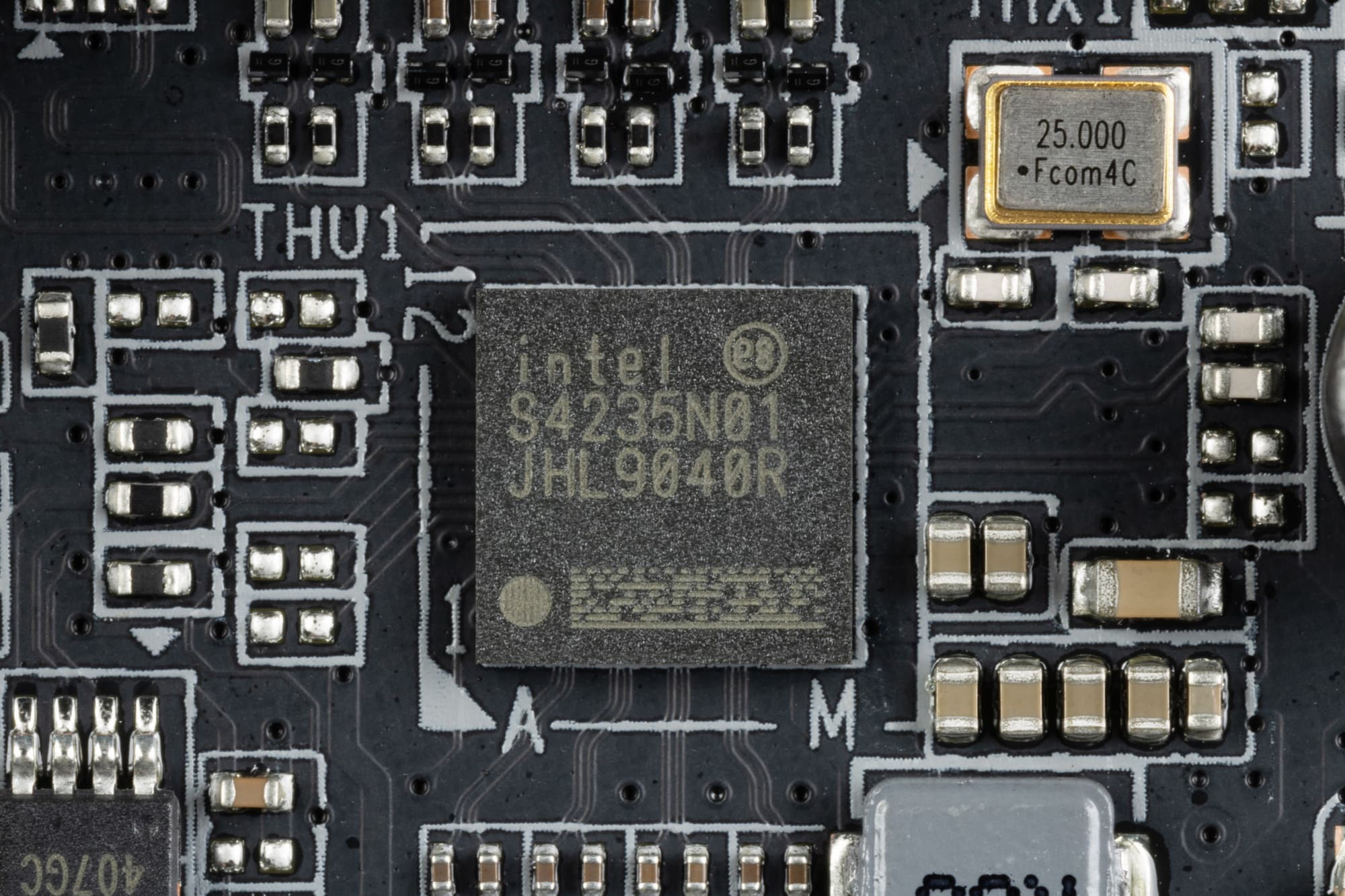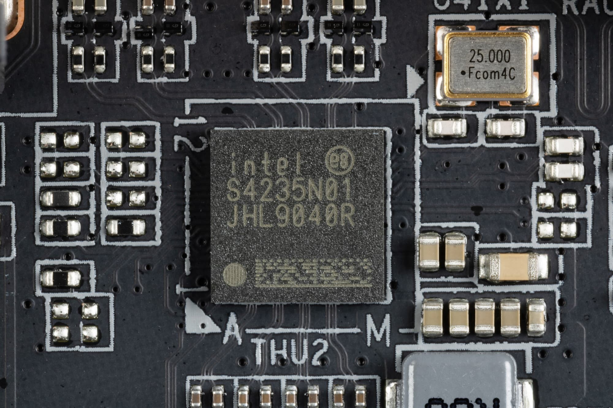 Для устойчивой скоростной передачи по протоколам USB4/TB4 на матплате имеются два усилителя (ре-драйвера) от той же компании Intel.
