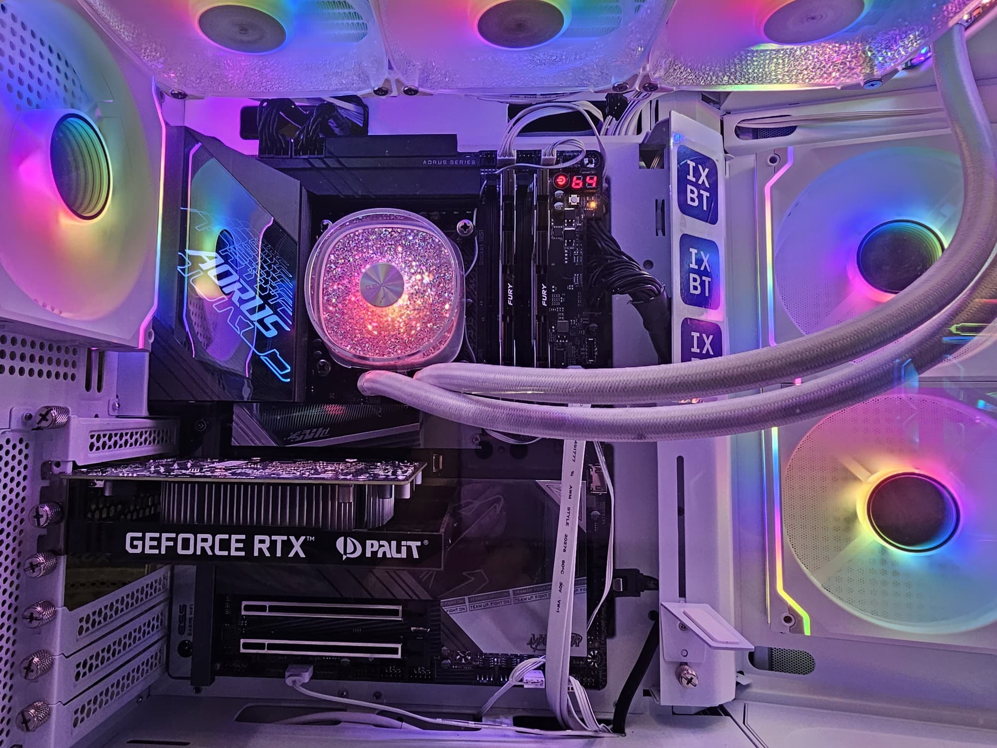 | Прочие внутренние элементы | 24-контактный разъем питания ATX 2 8-контактный разъем питания EPS12V 1 слот M.2 (E-key), занят адаптером беспроводных сетей 1 разъем для подключения порта USB 3.2 Gen2x2 Type-C 2 разъема для подключения 4 портов USB 3.2 Gen1 2 разъема для подключения 4 портов USB 2.0 10 разъемов для подключения 4-контактных вентиляторов и помп ЖСО 1 разъем для подключения неадресуемой RGB-ленты 4 разъема для подключения адресуемой ARGB-ленты 1 разъем аудио для передней панели корпуса 1 разъем для датчика шума 2 разъема для термодатчиков 1 разъем для сброса CMOS 1 разъем для устройств безопасности TPM 1 конфигурируемый разъем Reset 1 разъем для подключения управления с передней панели корпуса 1 кнопка включения питания Power 1 конфигурируемая кнопка перезагрузки Reset |