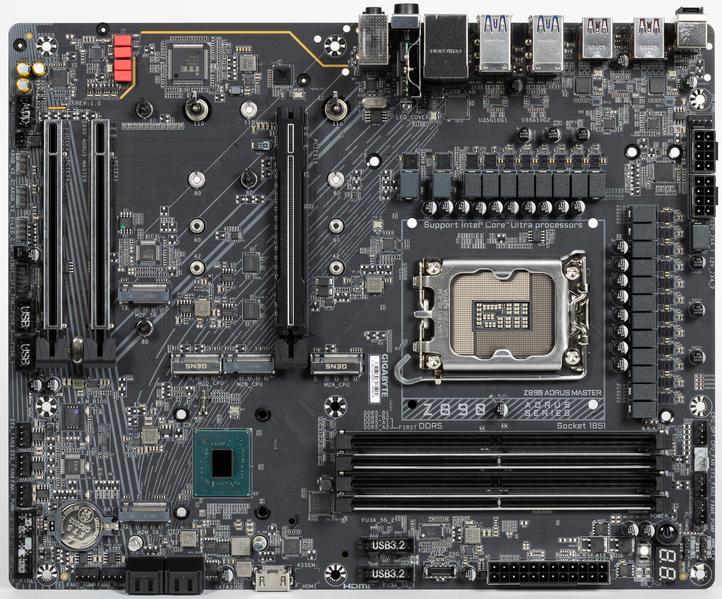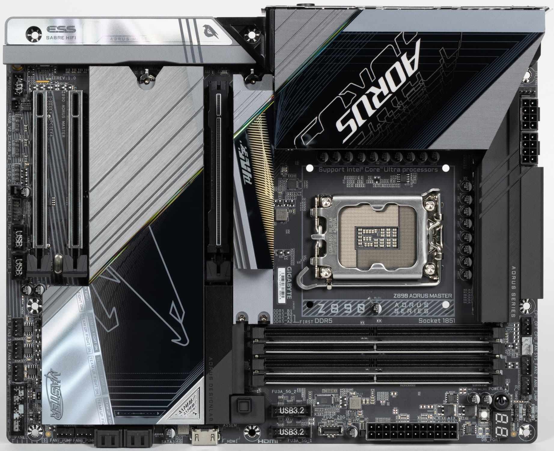 Первой материнской платой на новом чипсете Z890 и с новым процессорным сокетом LGA1851, попавшей к нам в лабораторию, стал продукт компании Gigabyte. Герой нынешнего материала – плата Gigabyte Z890 Aorus Master, она относится к топовому суббренду Aorus, поэтому перед нами почти флагман (мы помним, что самая-самая в этой линейке — материнка c суффиксом Xtreme, а Master — на ступень ниже).