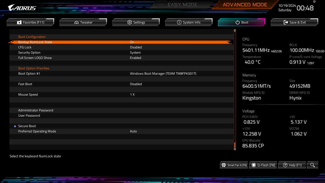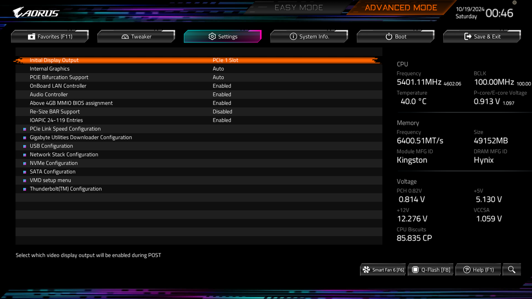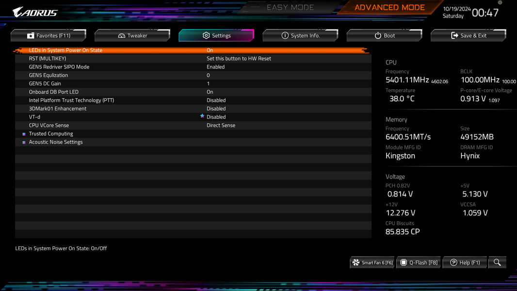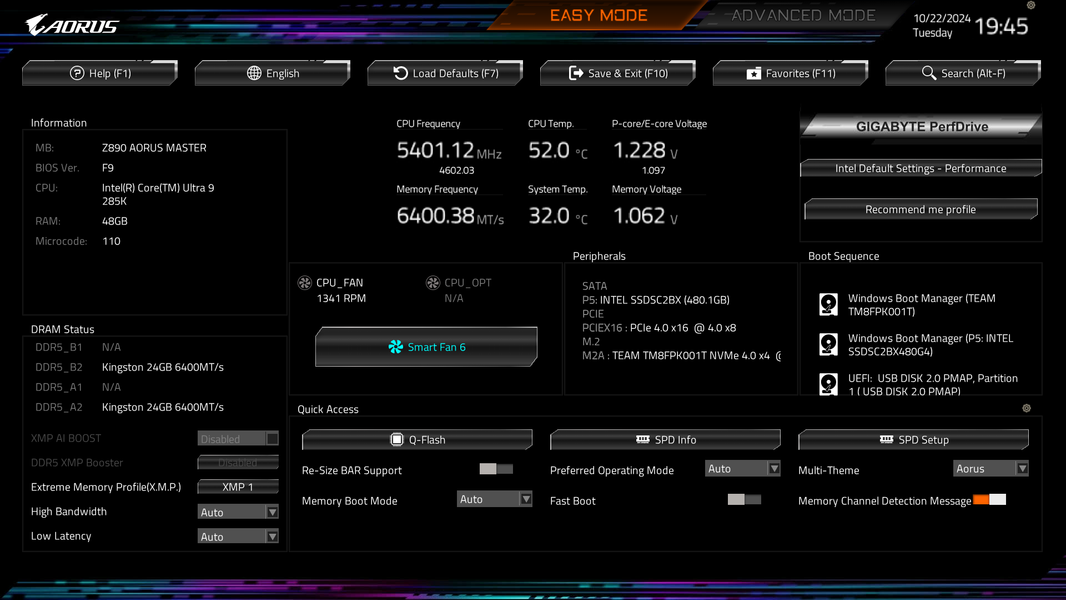 Формально имеется поддержка памяти DDR5 до 6400 МТ/с, однако всем хорошо известно, и производители материнских плат это активно рекламируют: через XMP-профили сейчас можно использовать пропускную способность до 8000 и выше МТ/с. В частности данная плата поддерживает ПСП до 8800 МТ/с (при ручном разгоне до 9500 МТ/с).