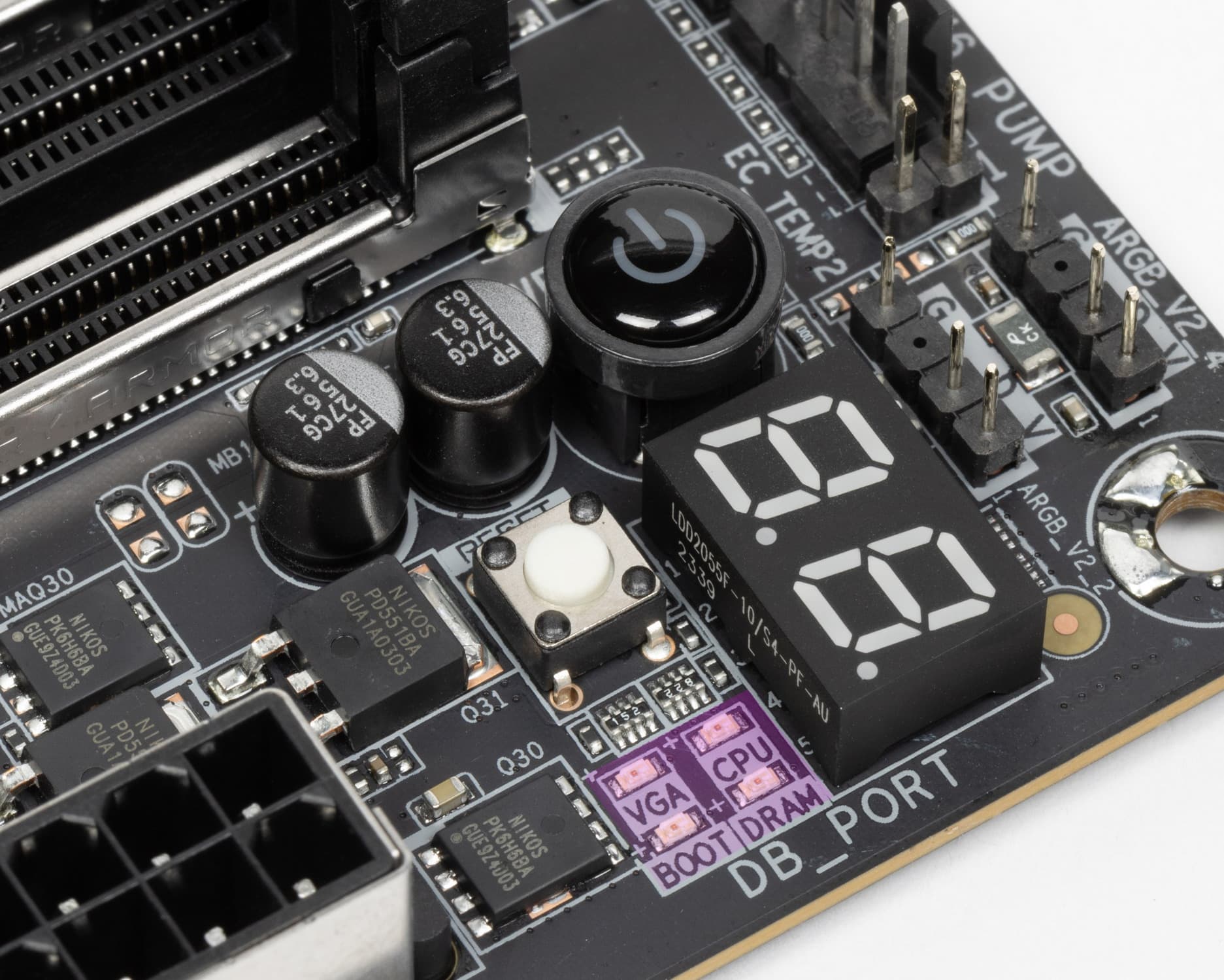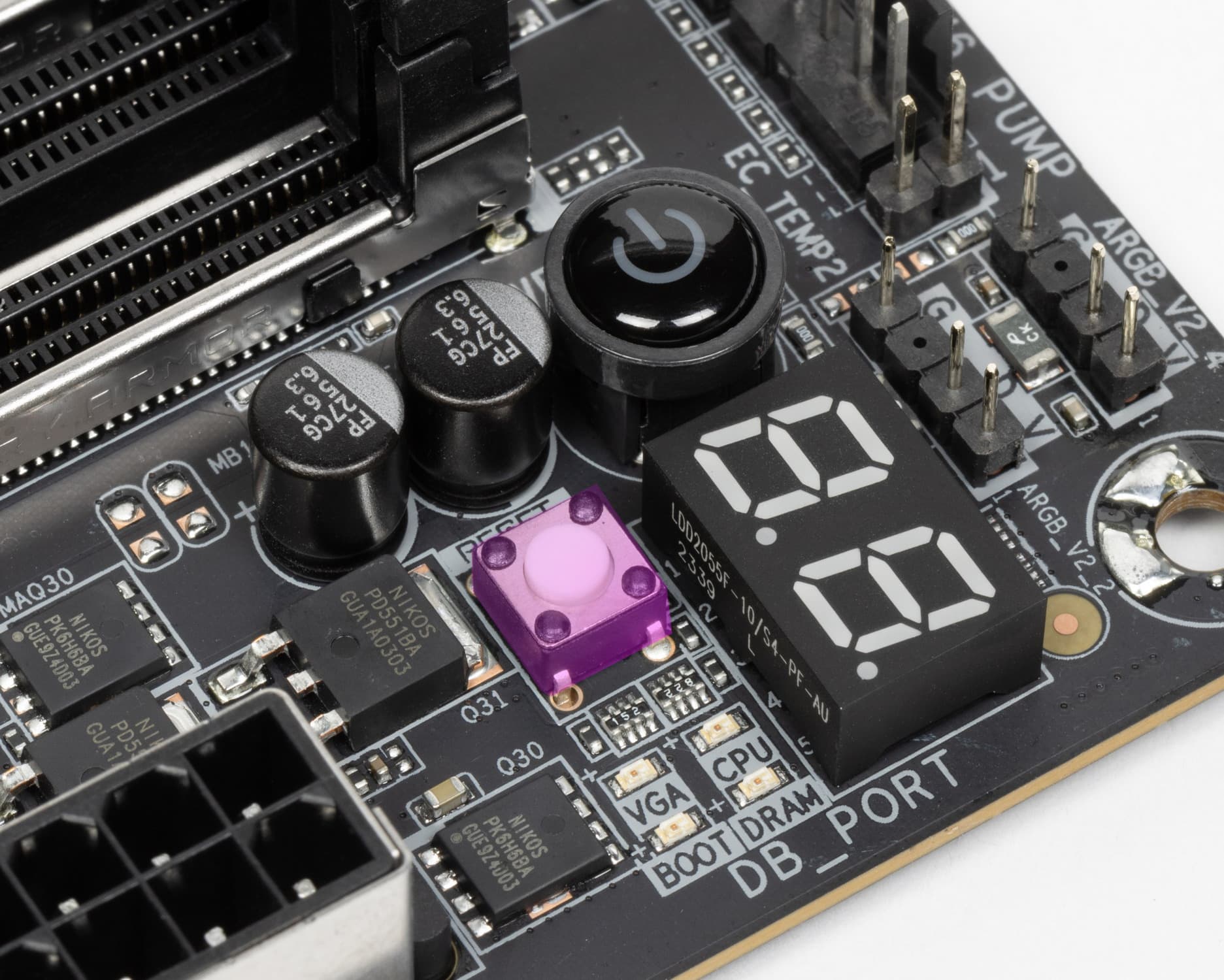 Для удобного извлечения видеокарт из слота имеется специальная кнопка — EZ-Plus, что расположена около слота PCIe x16, но в легко доступном месте.