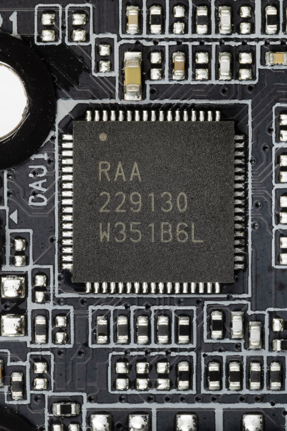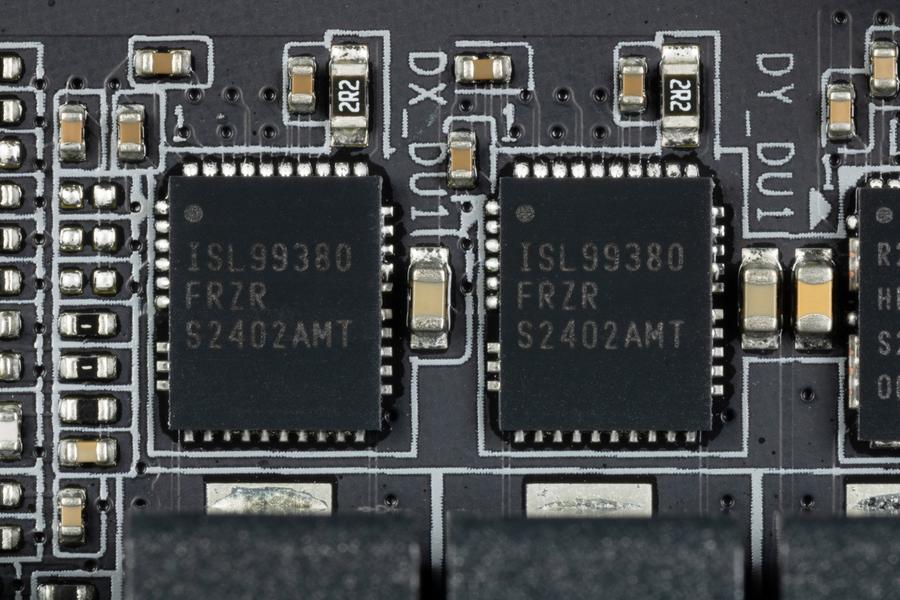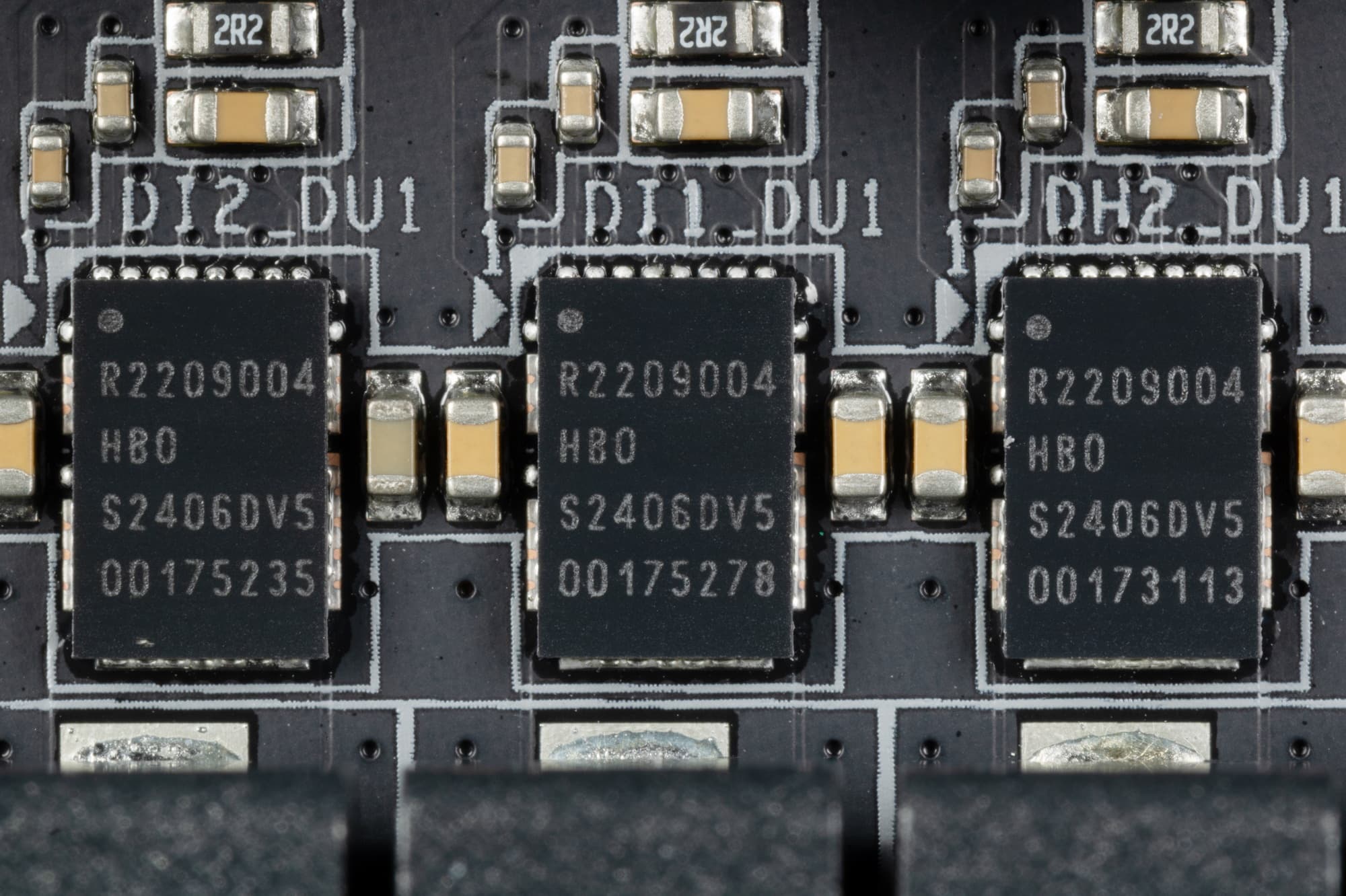 Каждый канал фазы VCore имеет суперферритовый дроссель и R2209004 DrMOS от Renesas на 110 А.