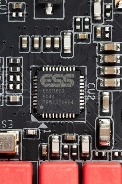 Аудиотракт вынесен на угловую часть платы, не пересекается с другими элементами. У карты два универсальных разъема с позолоченным покрытием по приему и выводу сигналов плюс оптический S/PDIF. Вывод по схеме 5.1 возможен только через использование аудиогнезд на передней панели корпуса совместно с двумя гнездами на самой плате, а также через S/PDIF. Настройка схемы – с помощью скачиваемого с сайта производителя ПО.