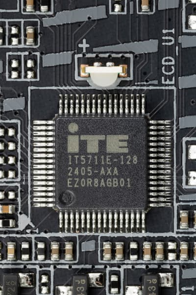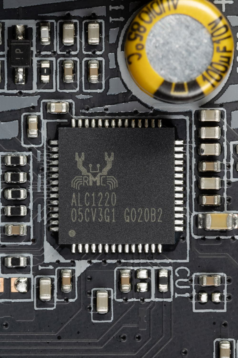 Мы знаем, что уже достаточно давно в большинстве современных материнских платах звуком заведовал аудиокодек Realtek ALC1220. В целом обеспечивает вывод звука по схемам до 7.1 с разрешением до 24 бит / 192 кГц. Мы видели уже и ALC4082 того же производителя с улучшенными характеристиками 32 бит / 384 кГц. Однако в данном случае мы видим возврат к прежнему ALC1220, а также схема вывода упрощена до 5.1. При этом теперь для работы такого кодека уже требуется сигнальные линии USB 2.0 (впрочем, оно и к лучшему, ибо протокол HDA «Азалия» уже сильно устарел и лимитирован).
