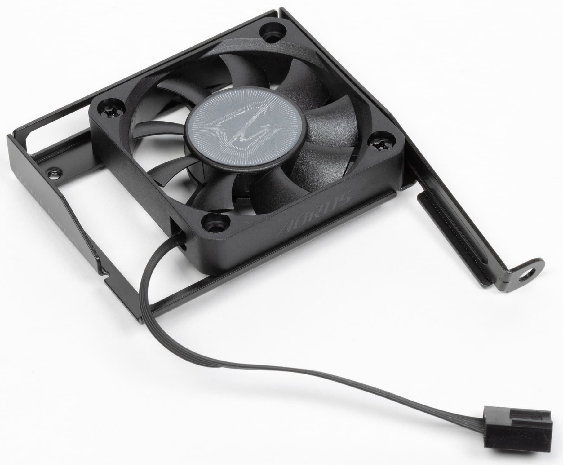 Учитывая, что одной из особенностей данной матплаты является поддержка современной памяти DDR5 в в виде CUDIMM. Цель этих новаций – достижение более высоких тактовых частот работы, а значит и нагрев модулей памяти может вырасти. Поэтому в комплекте поставки матплаты имеется дополнительный небольшой вентилятор, устанавливаемый на верхнем торце платы рядом со слотами ОЗУ.