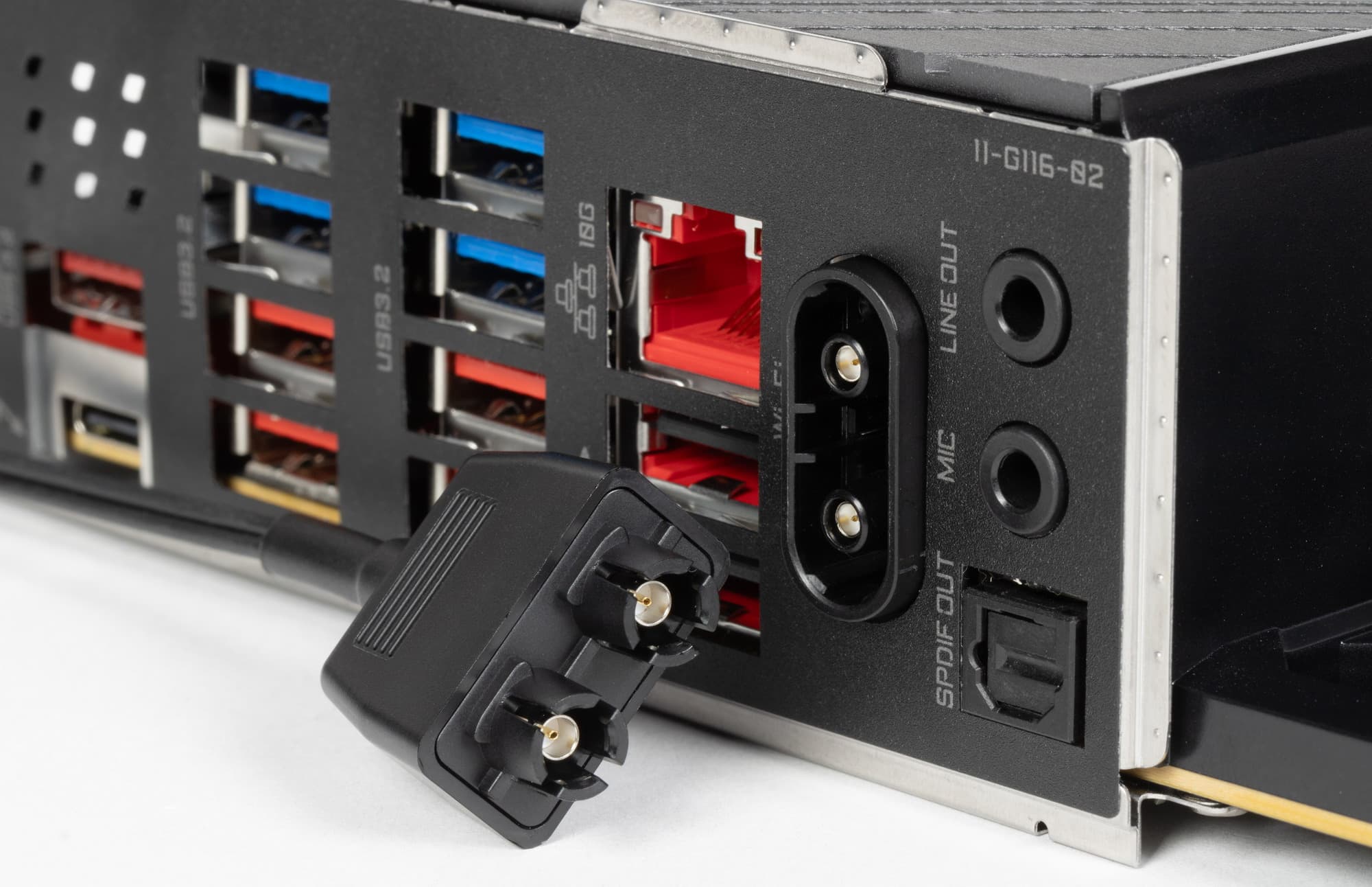 - 2 порта USB4: оба реализованы через Thunderbolt 4, встроенный в CPU и представлены двумя портами Type-C на задней панели;